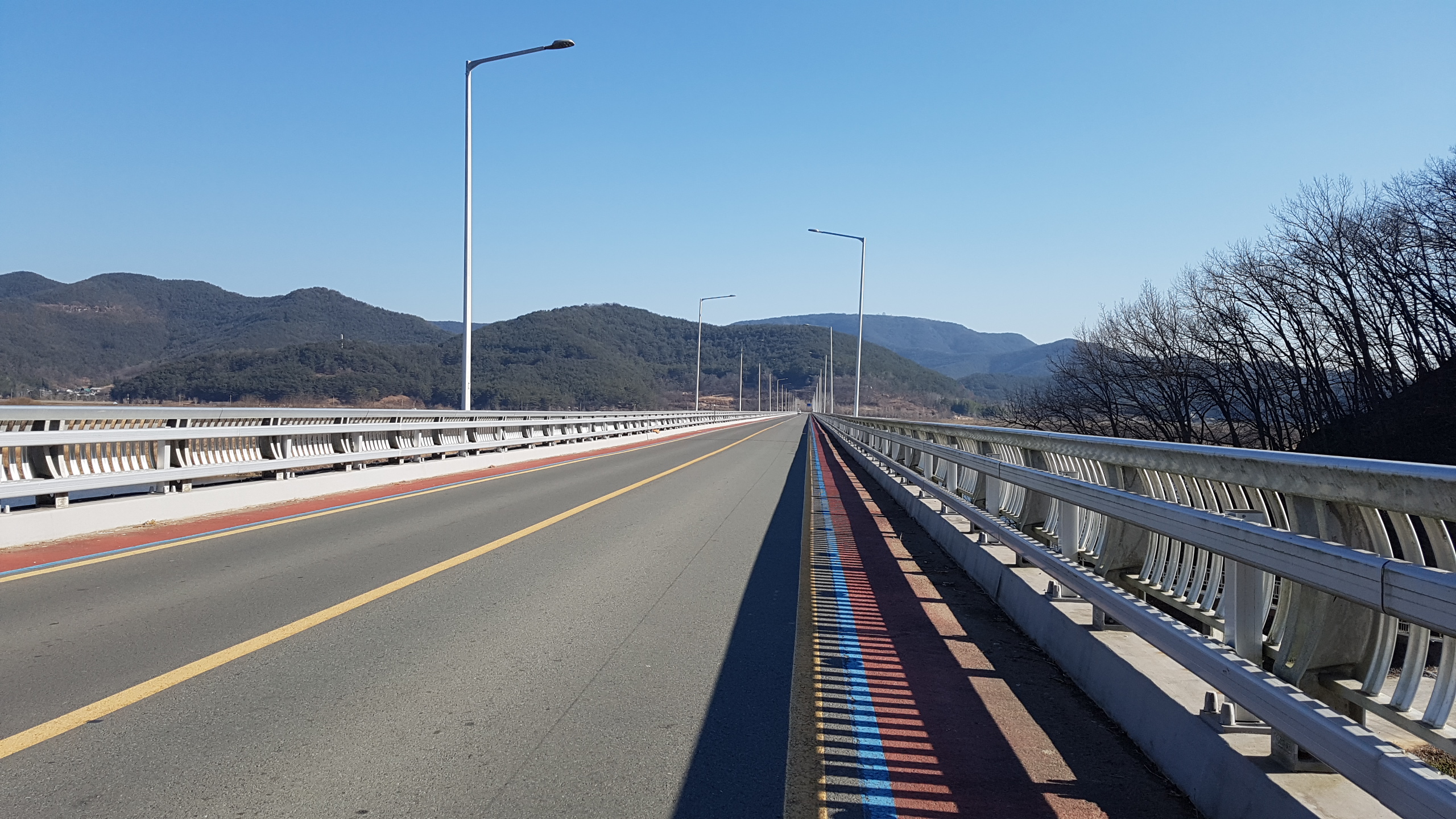 숲 사이로 박진대교가 보인다.