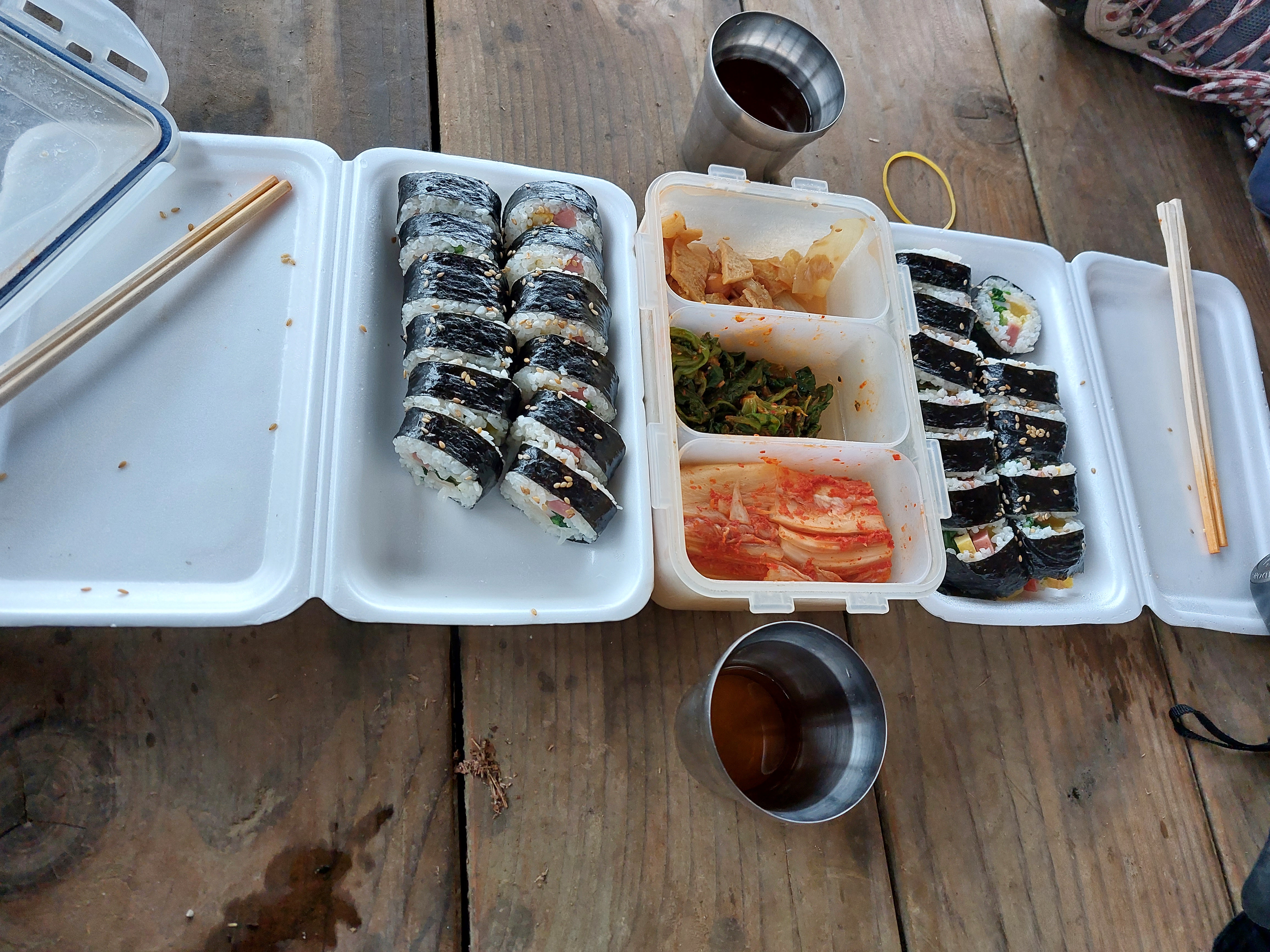 6. 비용 : 시내버스 1,450원*2=2,900원 , 김밥 3줄(주박사 구매), 하산주 2만 4천원(수구레국밥 8,000*2, 소주 2병 8,000)