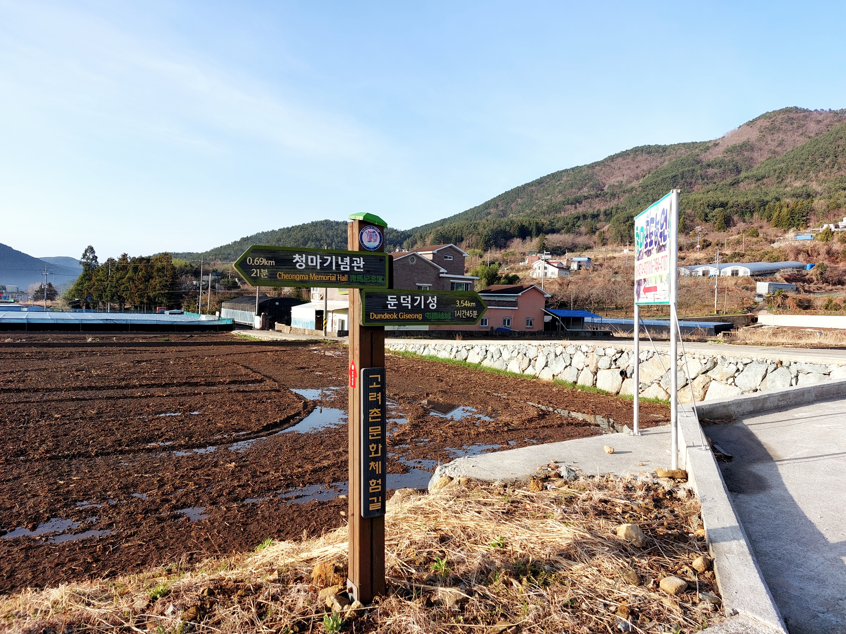 26코스 걸을때의 사진, 청마기념관 앞의 27코스 시작점 표지판
