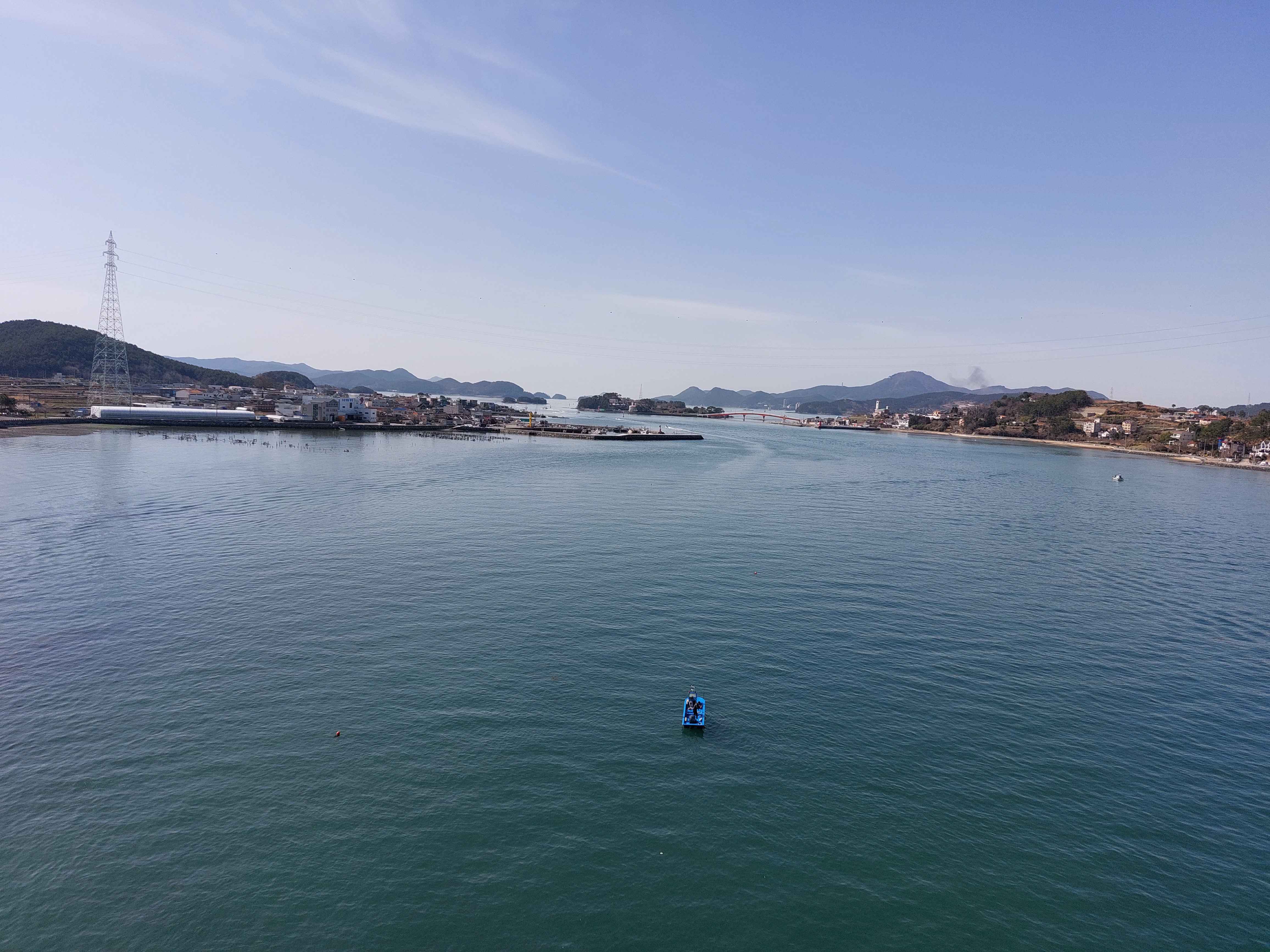 통영시와 거제시 사이에 있는 견내랑 바다-왼쪽 거제시, 오른쪽 통영시