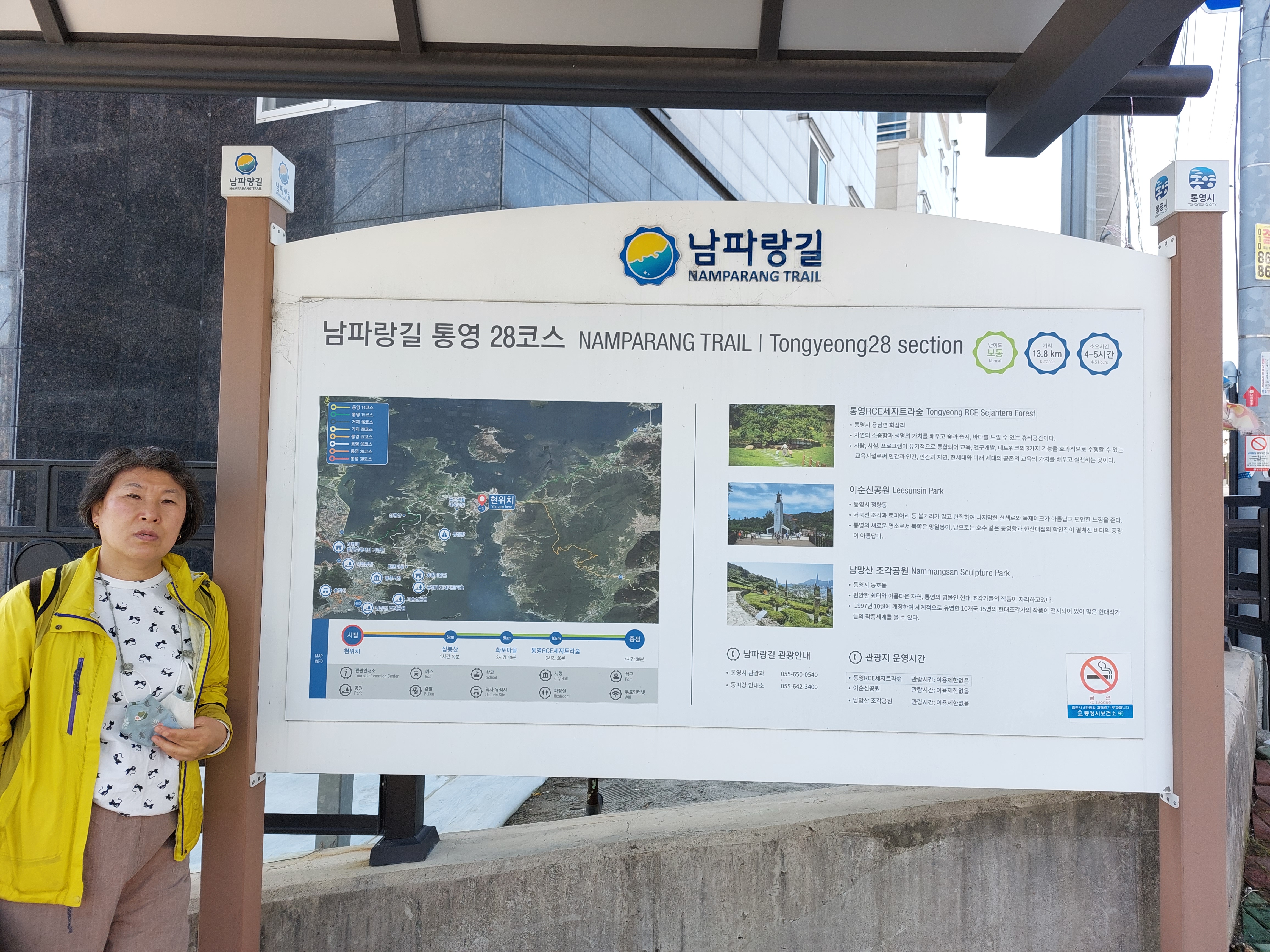 3. 트래킹 코스 : 토월성원 딸 자가용 (06:10) - 거제 둔덕면 방하3거리(07:20) -둔덕기성(08:26) -오량교차로-오량초등학교-거제대교-신촌마을(27코스 종점 및 28코스 시작점,10:10)-장흥고씨 통영문중 추모공원(10:44)-통영생활체육공원 용남구장(11:00)-삼화삼거리-양촌마을입구(11:27)-음촌마을-삼봉산,이봉산,일봉산 기슭 임도(11:35-12:45) -용남면사무소-창원지방검찰청 통영지청-용남해안로(선촌마을,13:10)-세자트라숲(13:35)-이순신공원(14:10)-남망산조각공원입구,28코스 종점(15:30)-중앙시장 버스정류소 시내버스 401번탑승-통영터미널 탑승(16:41)-남마산도착(18:10)-토월성원(19:10)