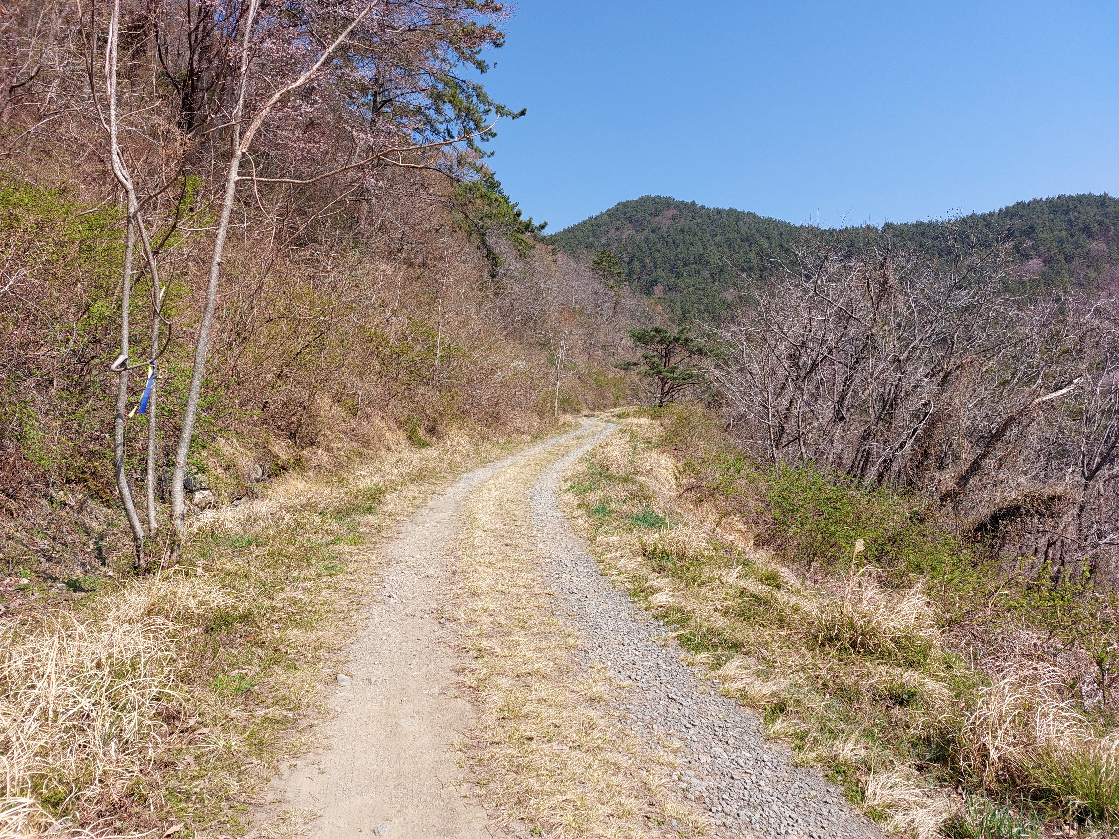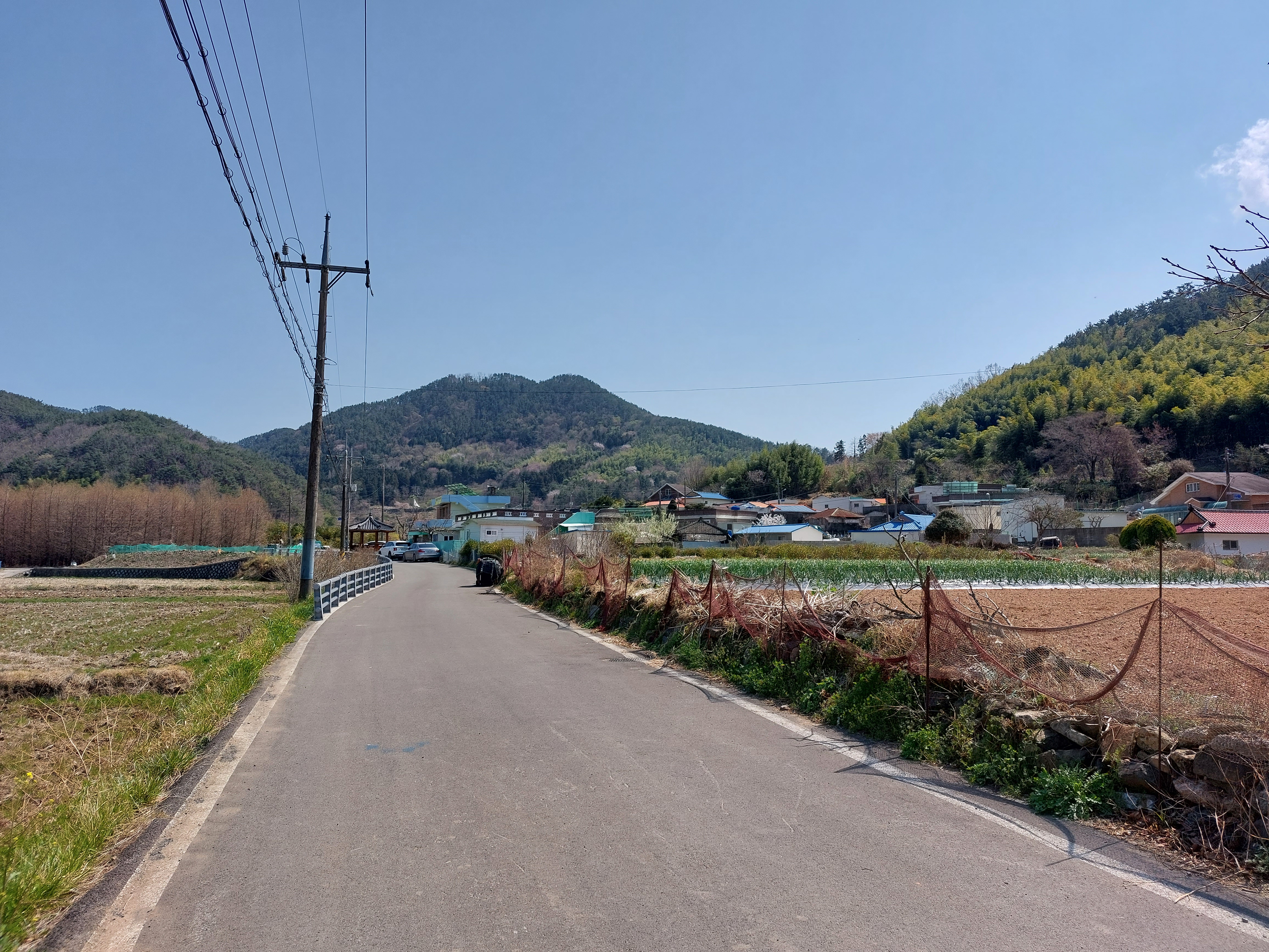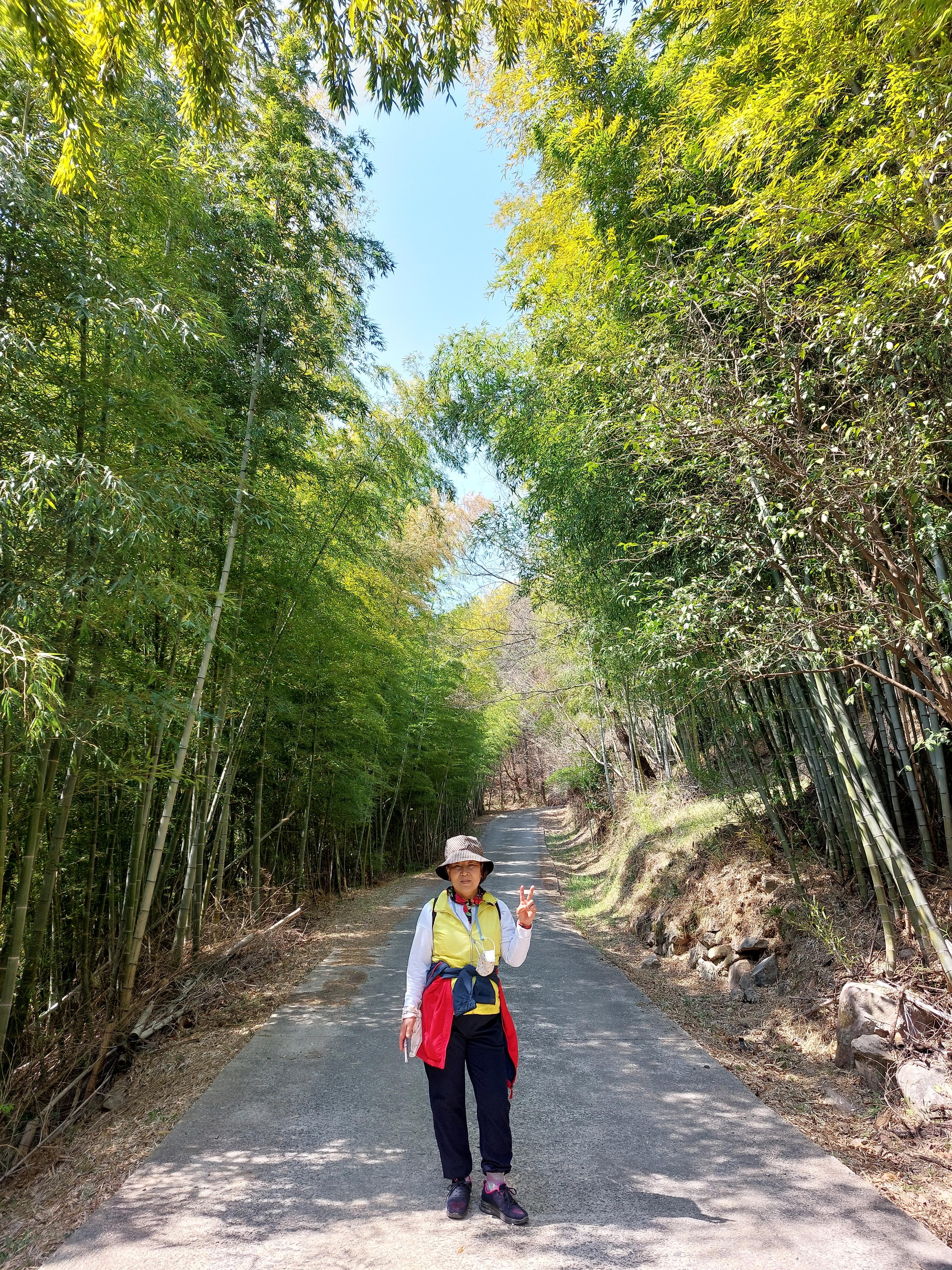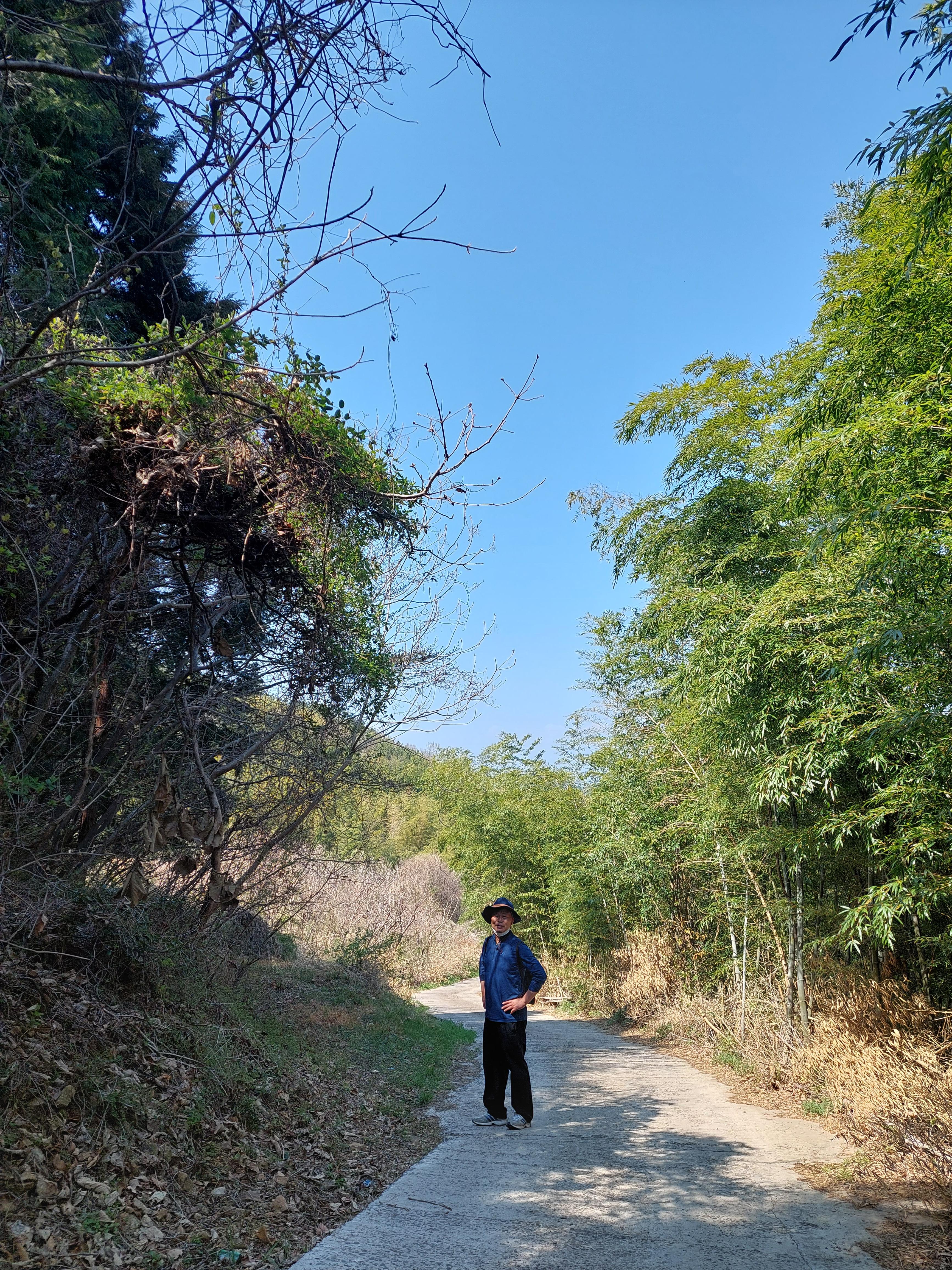맹종죽 숲길 체험길로 향하여-오른쪽 낮은곳이 모리고개이며 저 고개를 넘어가야 한다.
