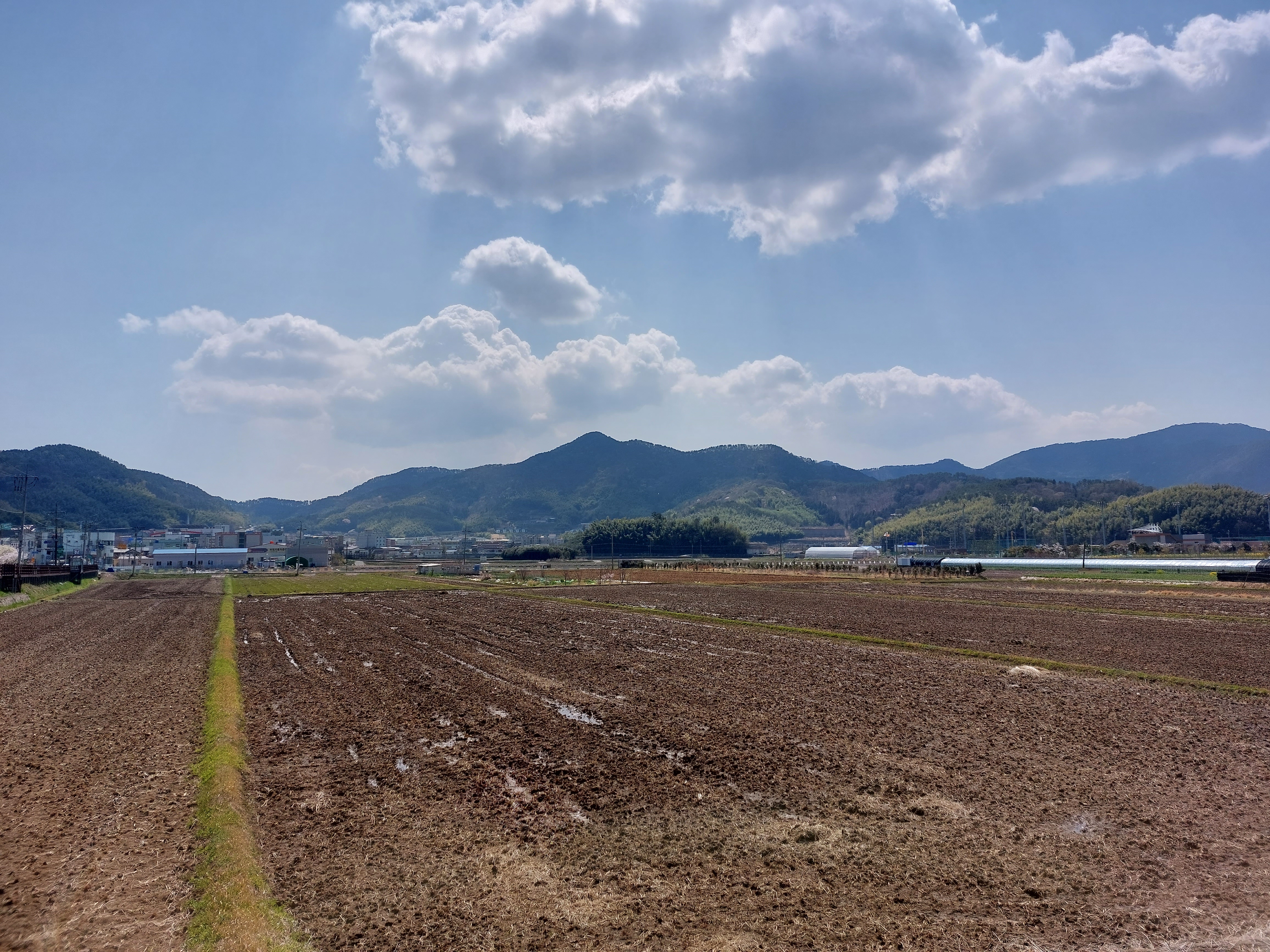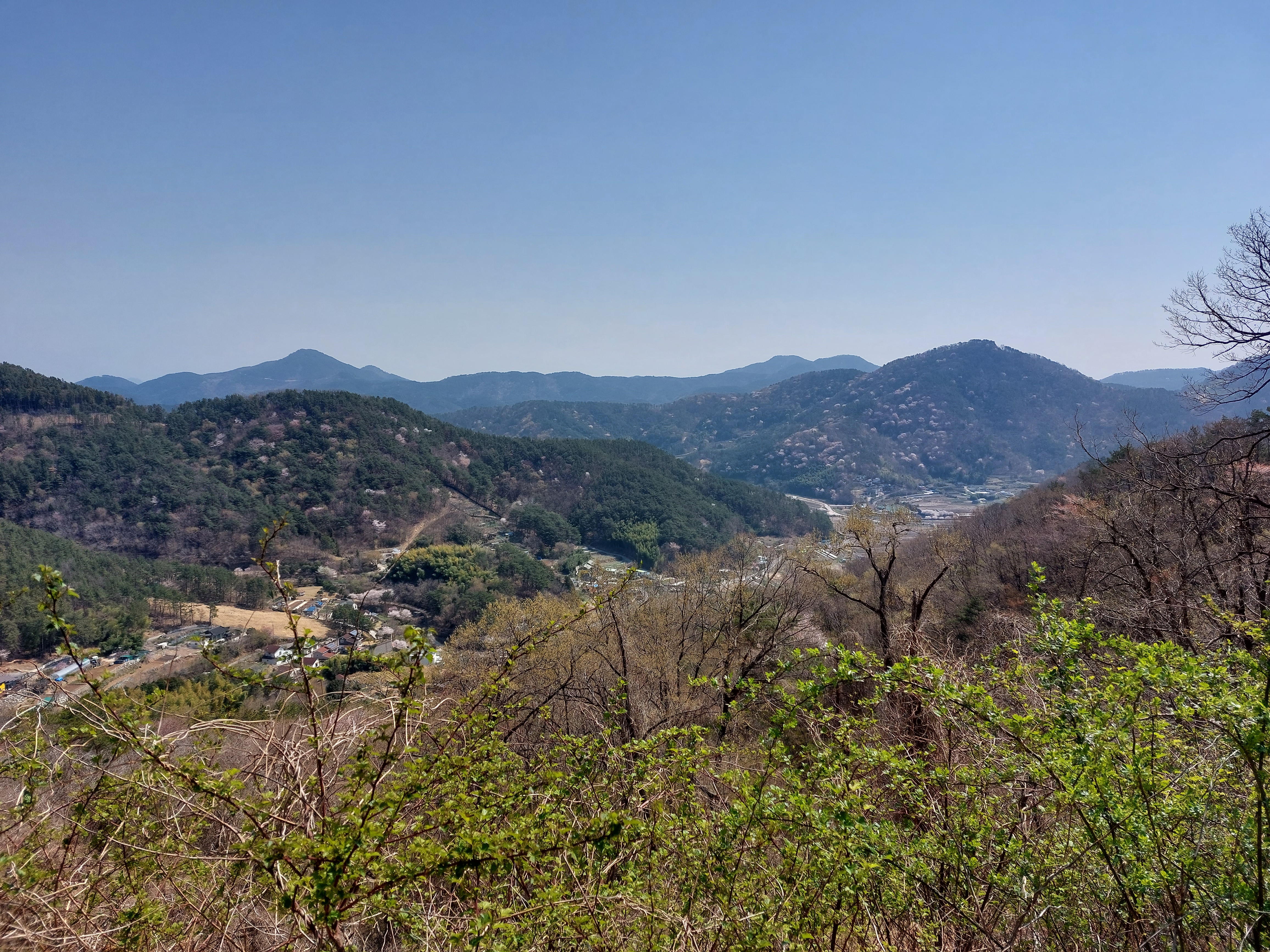 모리고개에서 바라 본 풍경-제일 우측에 앵산이 우뚝솟아 있다.