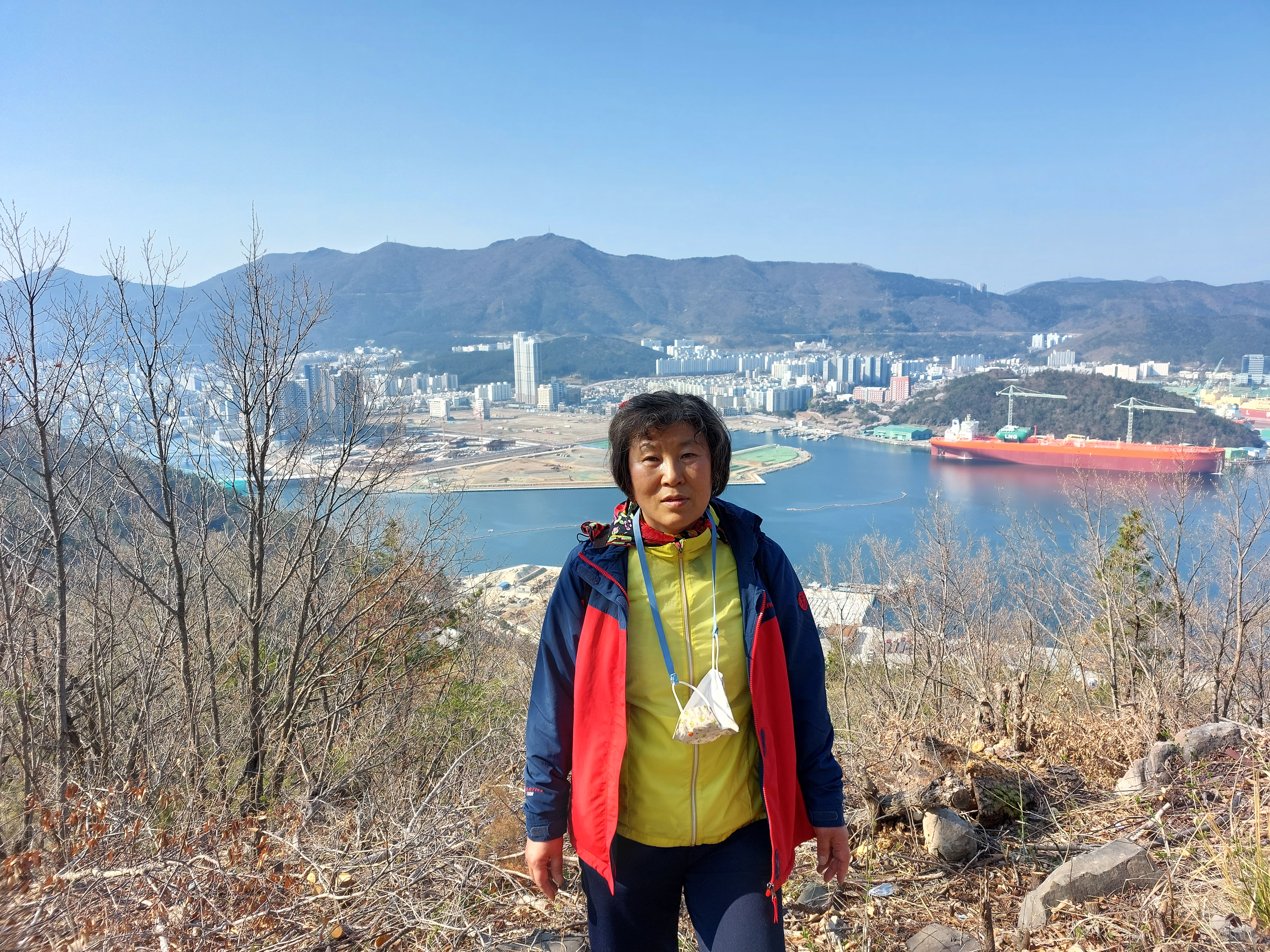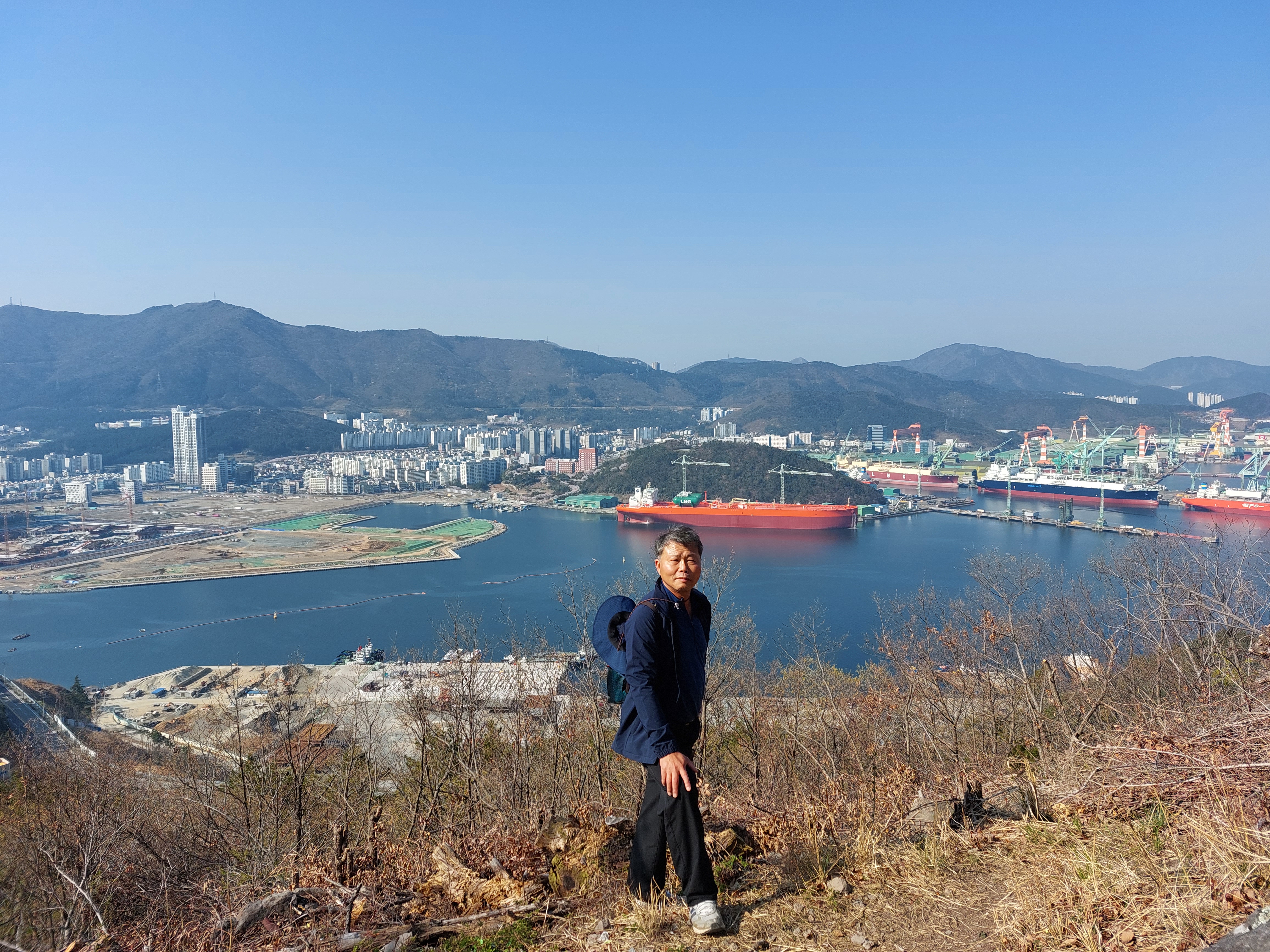 팔각정전망대에서...매립된 고현만과 그뒤로 계룡산,우측은 삼성조선소가 시야에 들어온다.