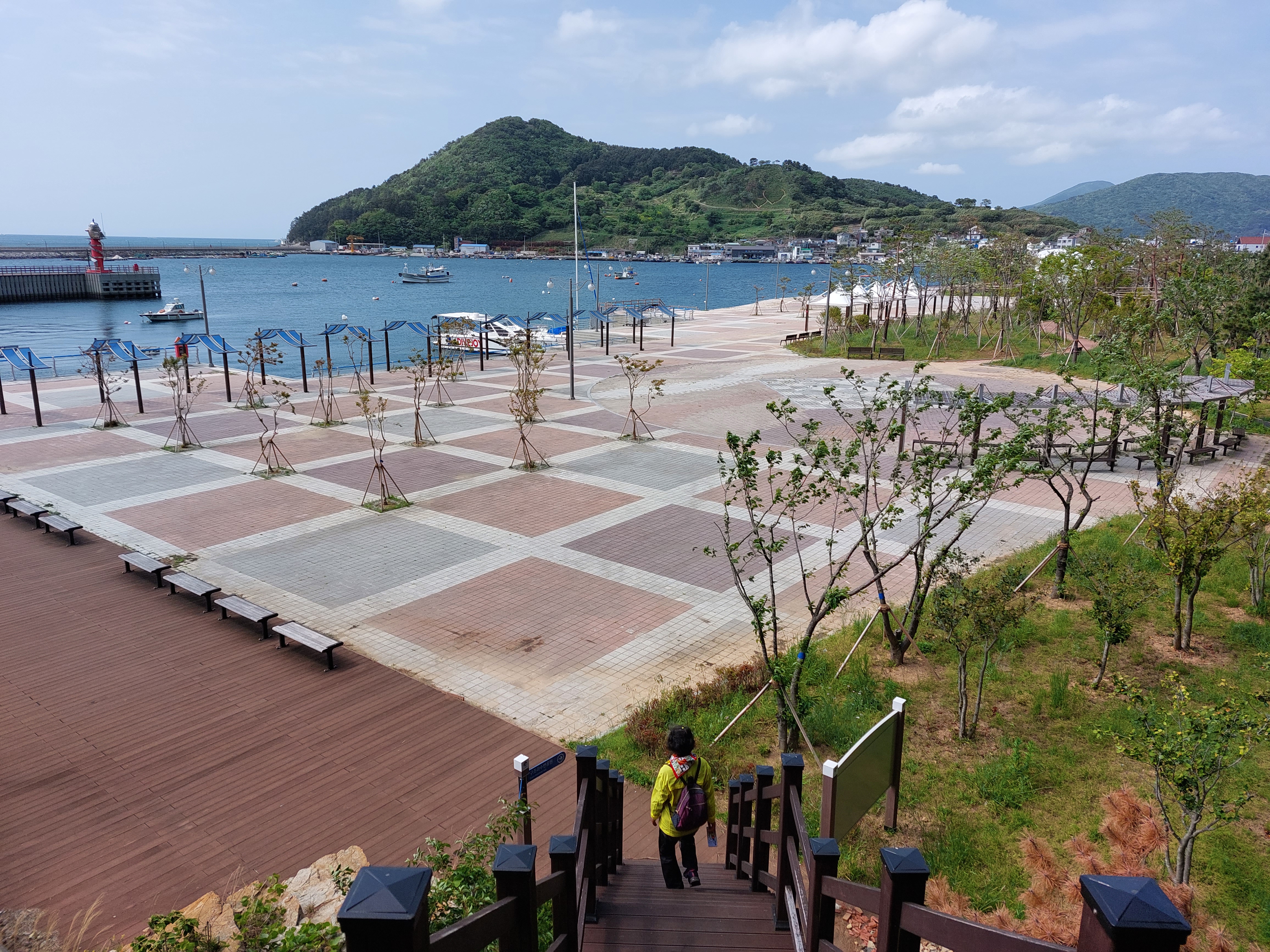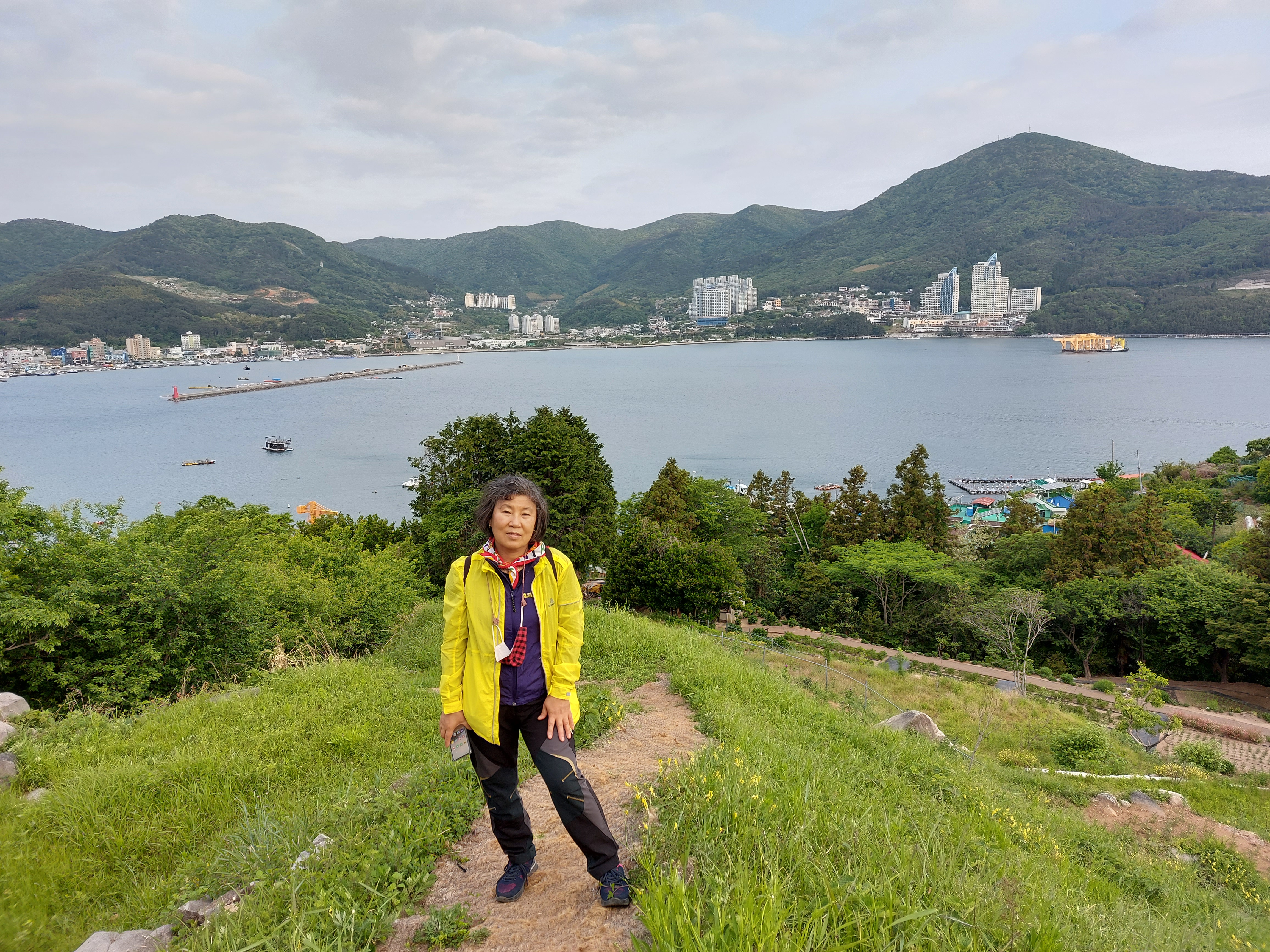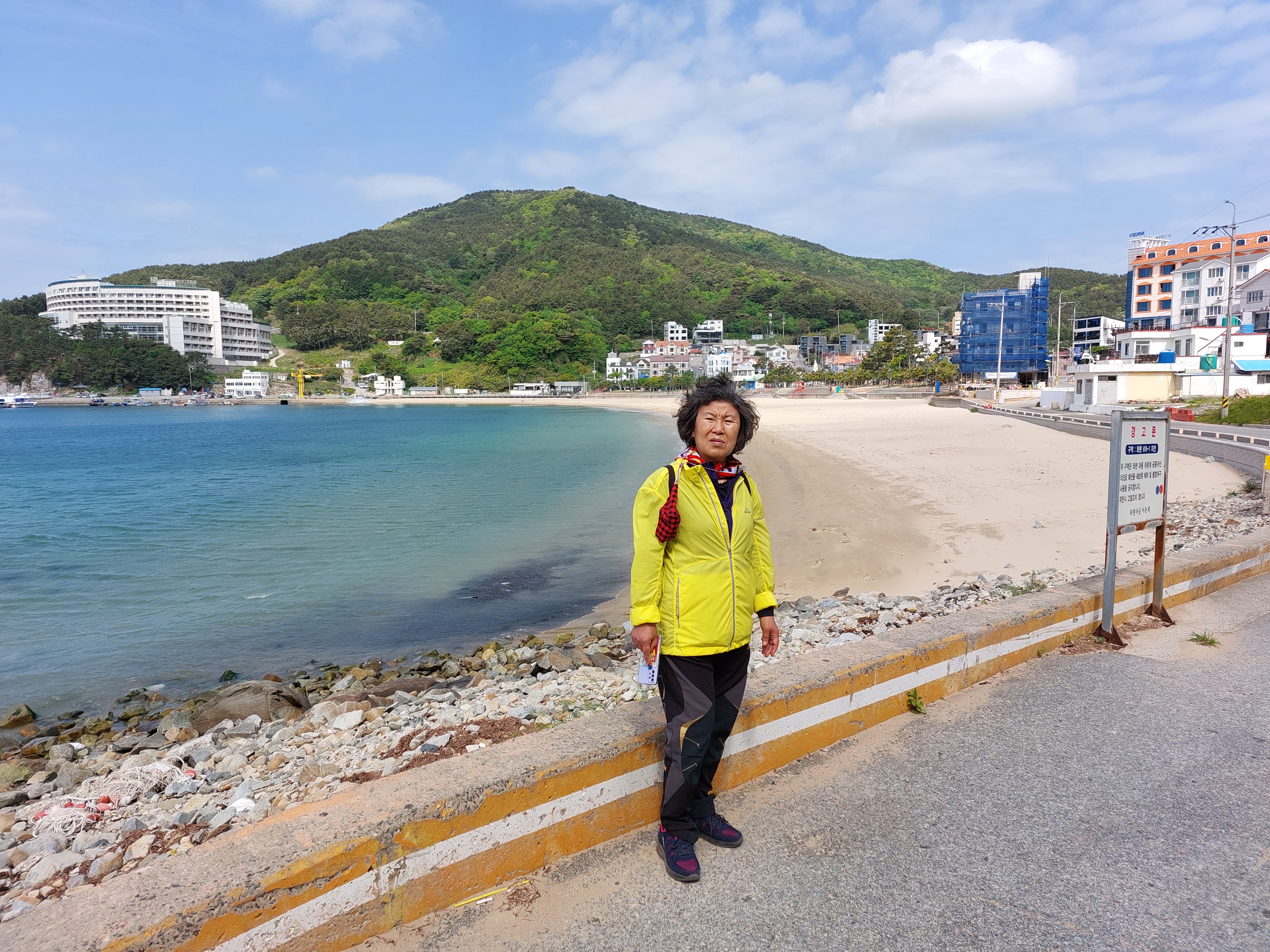 구조라 수변공원, 건너에 보이는 산은 수정봉..22코스에 저곳을 지나가야 함