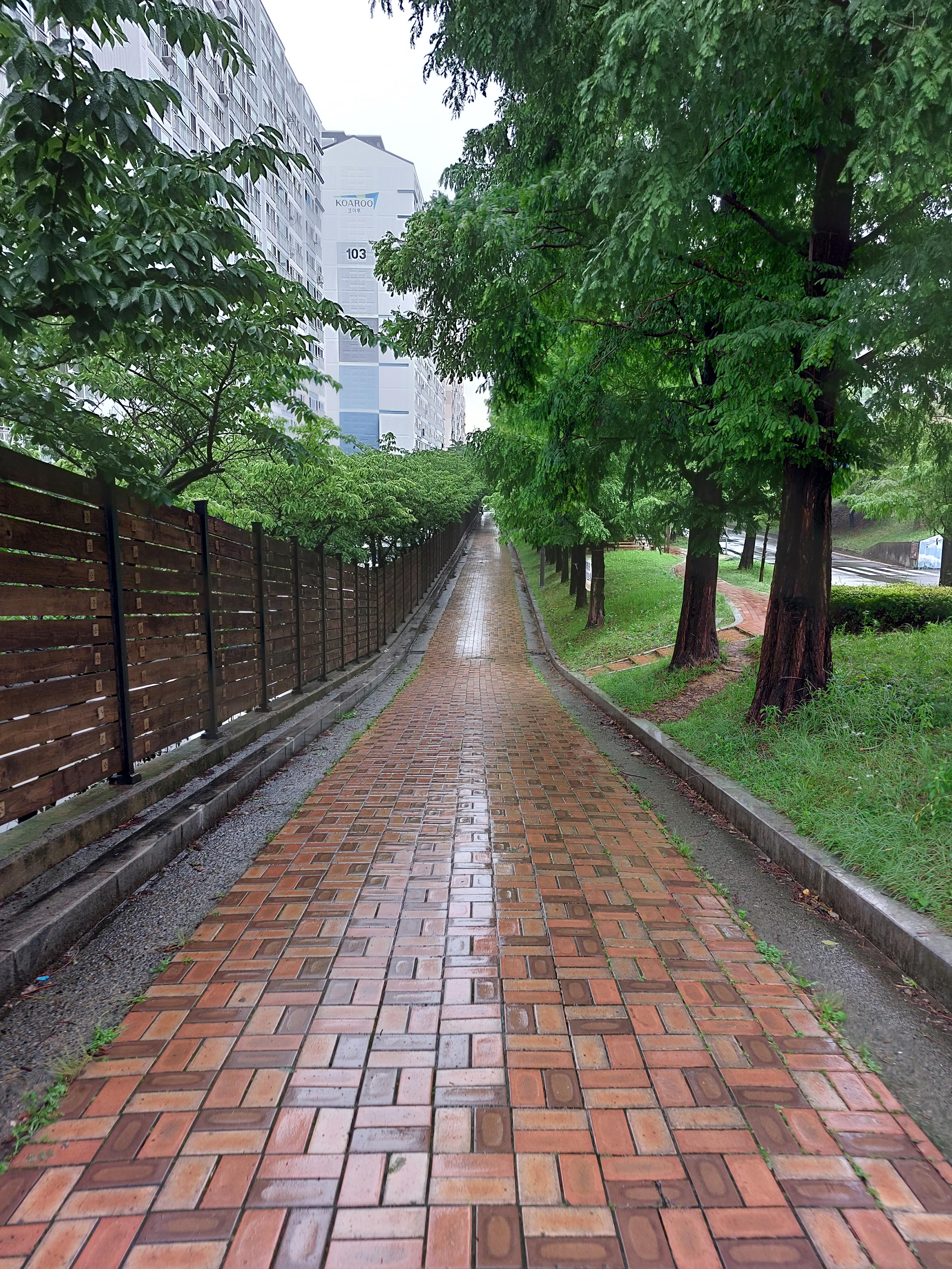 7. 2주만에 다시 남파랑길 트래킹을 나섰다. 새벽에 일기 예보를 보니 흐림이라고 되어 있었는데 경남대학교를 지날 무렵 약한 보슬비가 내리더니 현장에 가서는 제벌 빗줄기가 굵어져 약간 불편한 점은 있었으나 차라리 햇볕쨍쨍 나는 것 보다는 시원해서 좋았다. 이제 거제 12코스중 오늘로써 마감하는 날이다.