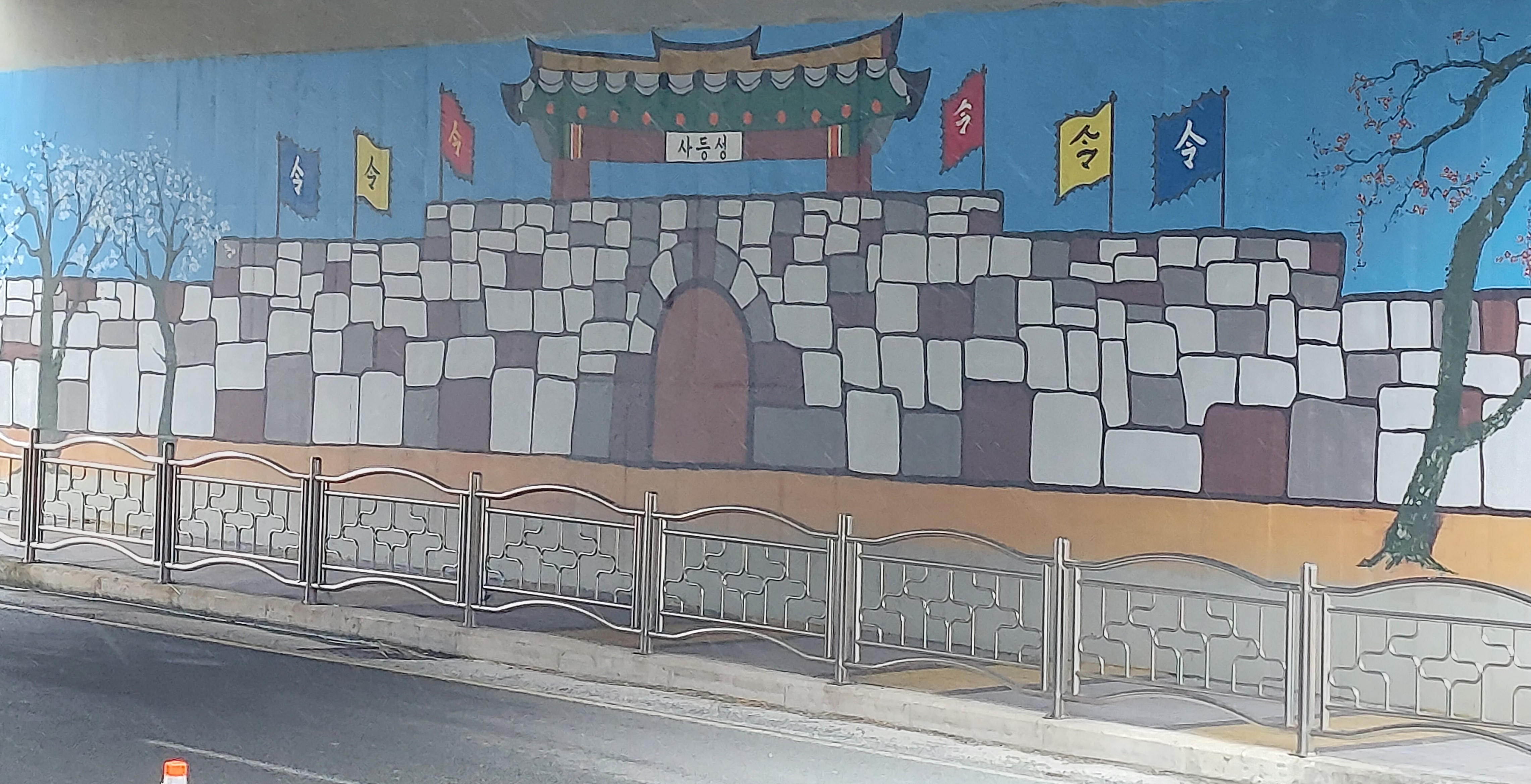 신거제대교위에서...왼쪽에 남파랑길 방향 표시가 있다.