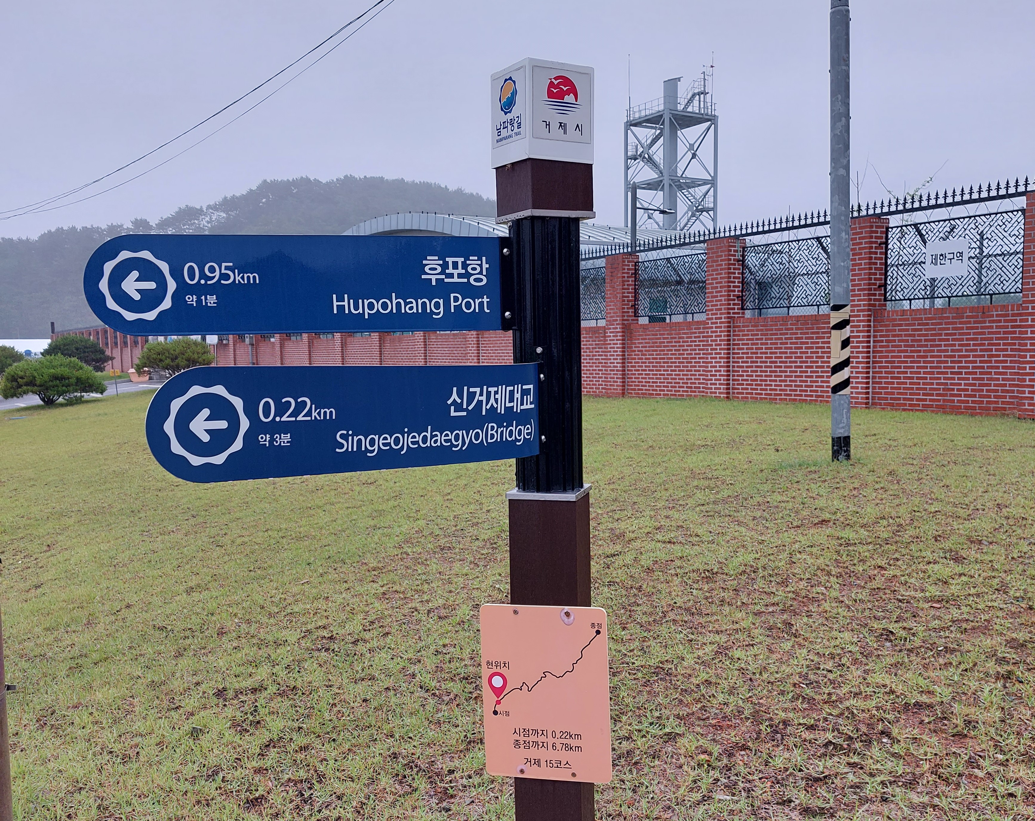 왼쪽끝 저기가 16코스 종점인데 안내판이 아무것도 없음-아래 17코스 시작점 안내판은 오른쪽 고현버스터미널 맞은편에 세워져 있음..처음 17코스가 그쪽으로 통과한것 같음