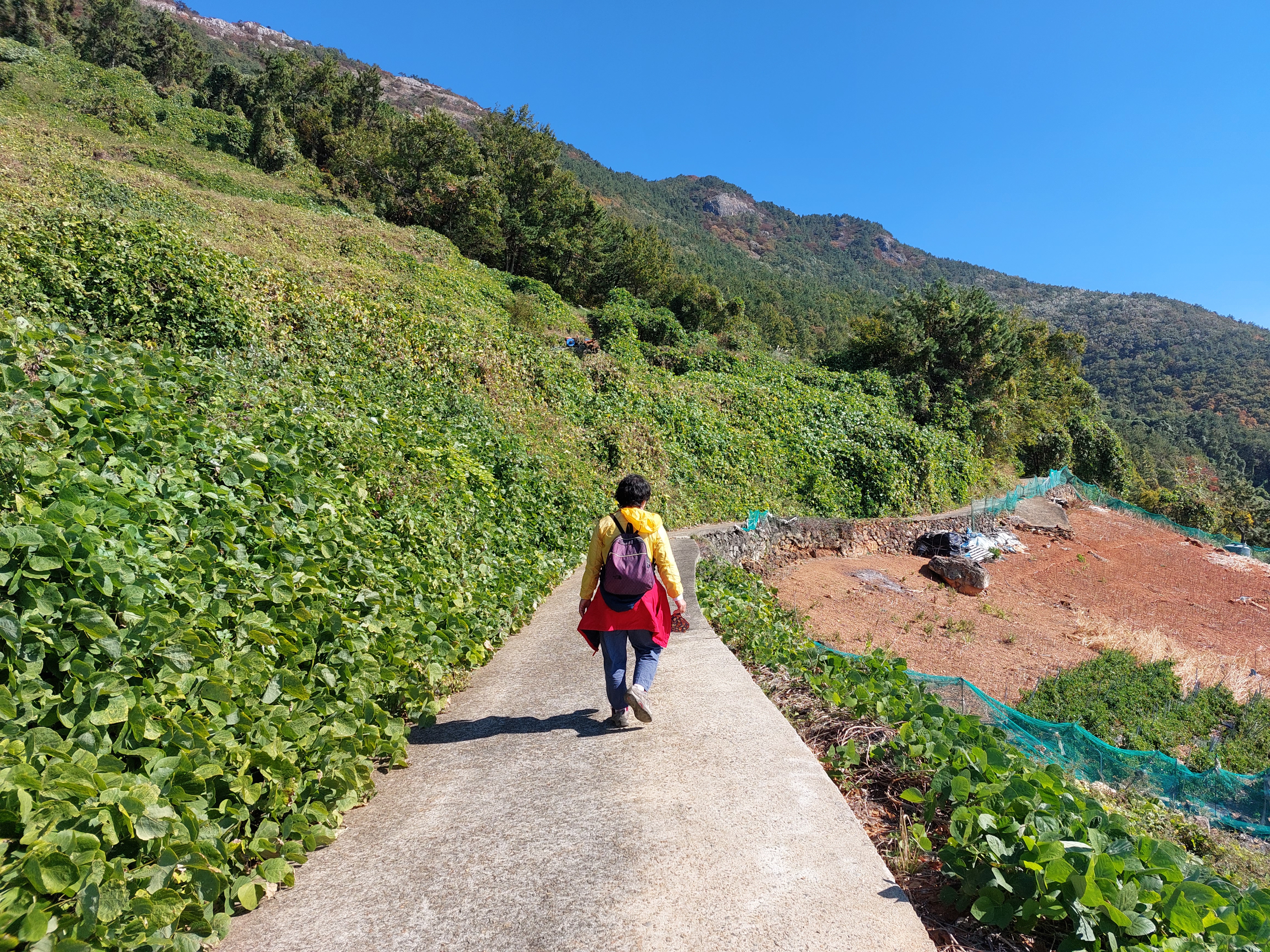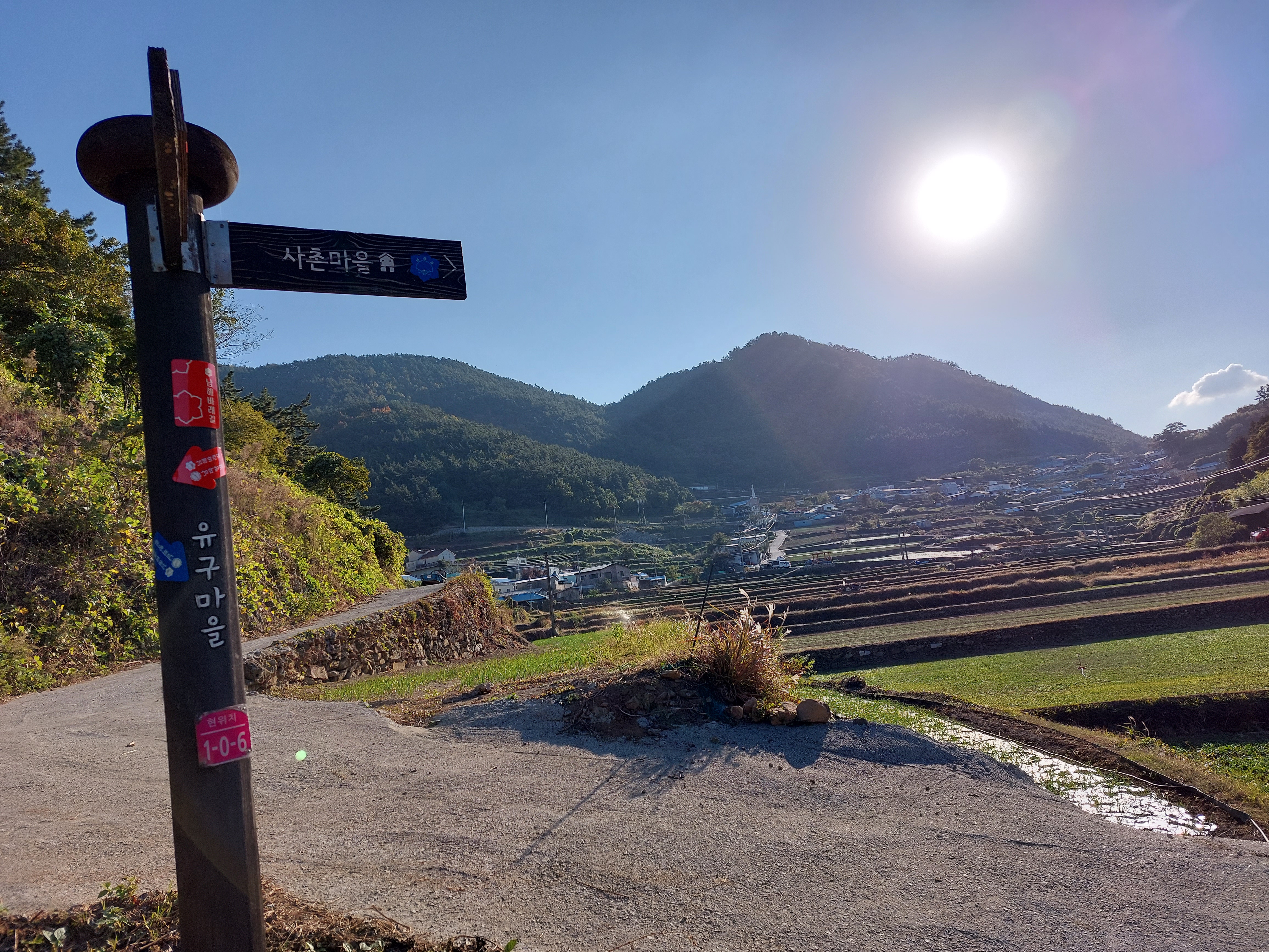 7. 가천다랭이마을 1주차장에서 차박을 하고 아침 7시에 오리 마을로 가는 버스가 있어서 일찍 식사를 마치고 오늘의 일정을 시작하였다. 오늘은 정방향이 아닌 역방향으로 트래킹을 하였는데 그 이유는 도착하여 버스 시간을 기다릴 필요없이 곧장 애마를 타고 창원으로 복귀할 수 있기 때문이다. 평산항에서 출발하지 않고 오리마을에서 출발한 것은 다음에 비교적 짧은 44,45코스 두 코스를(합26.5km)하루에 완보하려고 하니 조금 부담스러워 오늘 44코스중 일부(2.7km,약 50분 소요)를 미리 걸어 두기 위해서이다, 처음에는 다랭이마을에서 6시 50분에 출발하는 406번 버스를타고 남구마을입구까지 가서 역방향으로 오려고 하였으나 힘들거 같아서 오리에서 출발하였다.