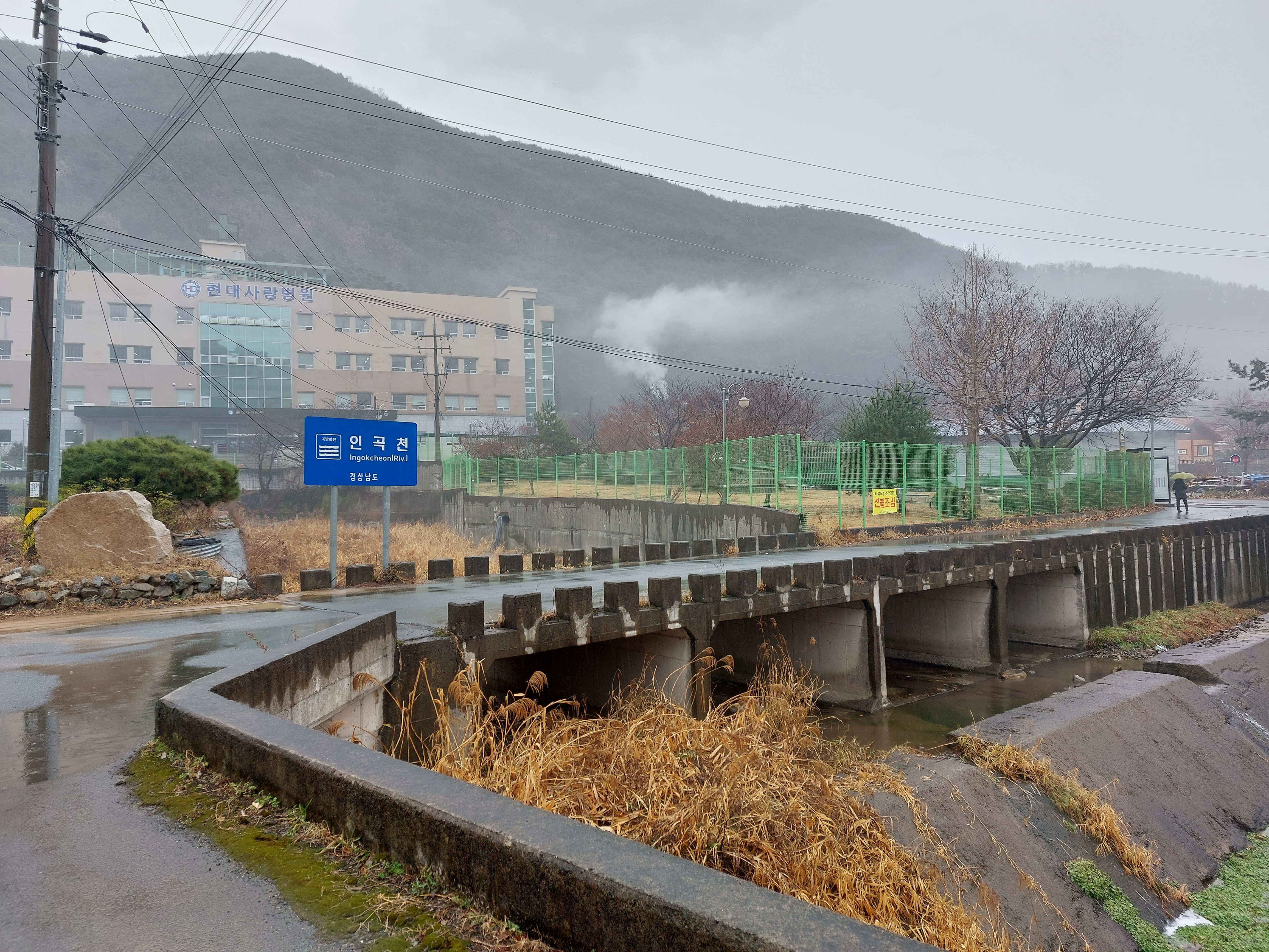 현대사랑병원.. 다리끝 사람 서있는 곳에 버스정류소가 있다.