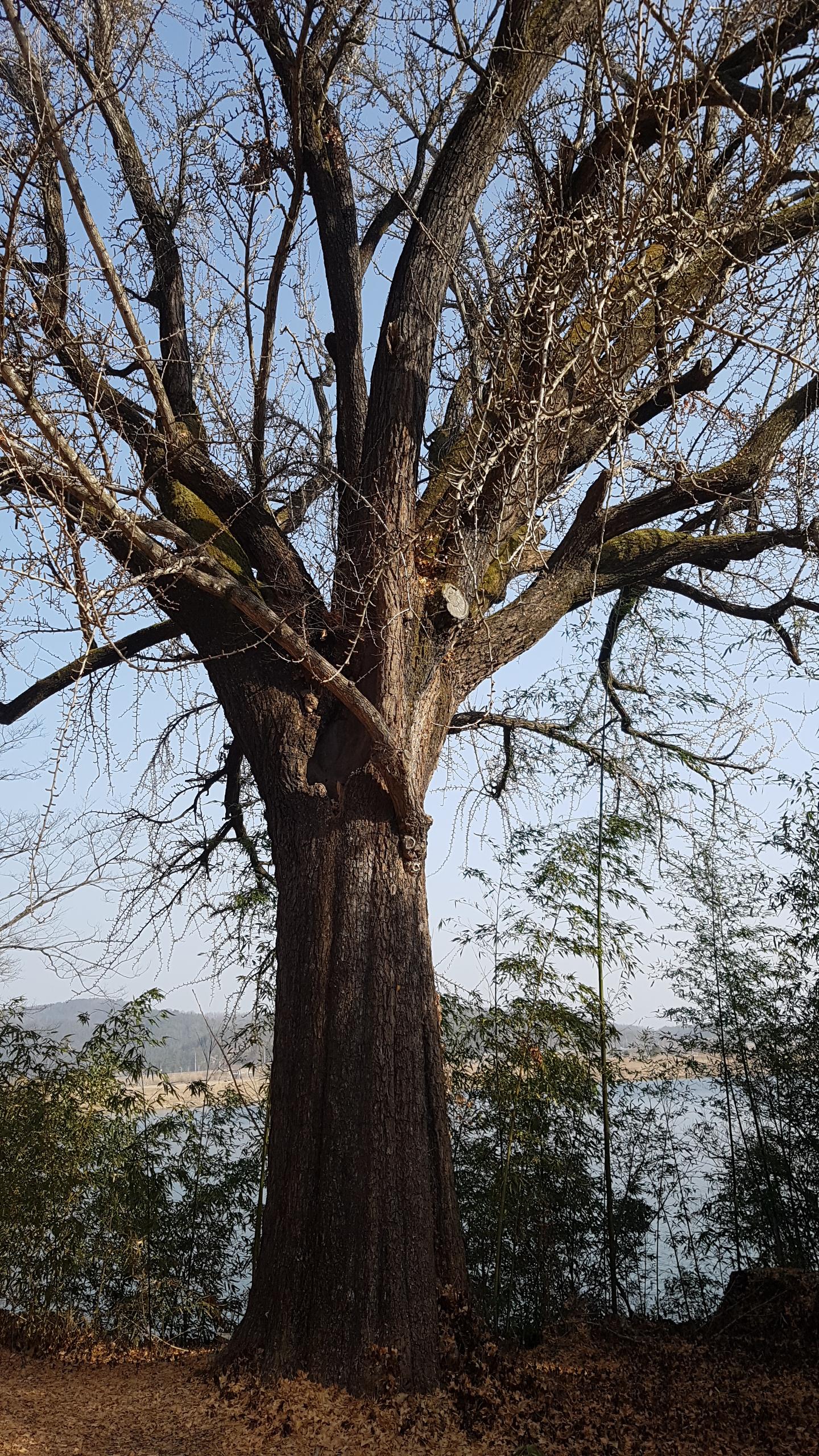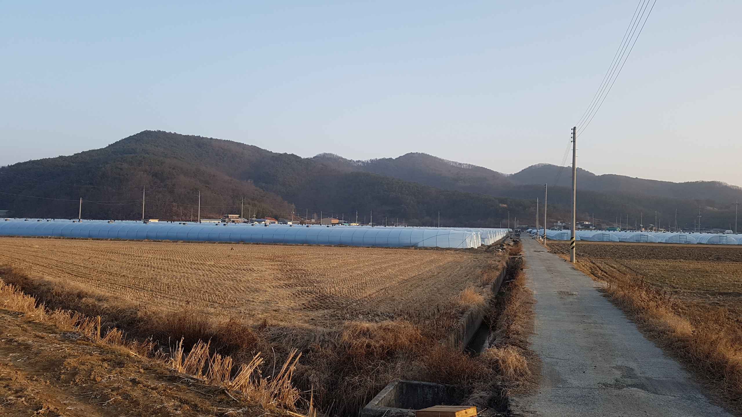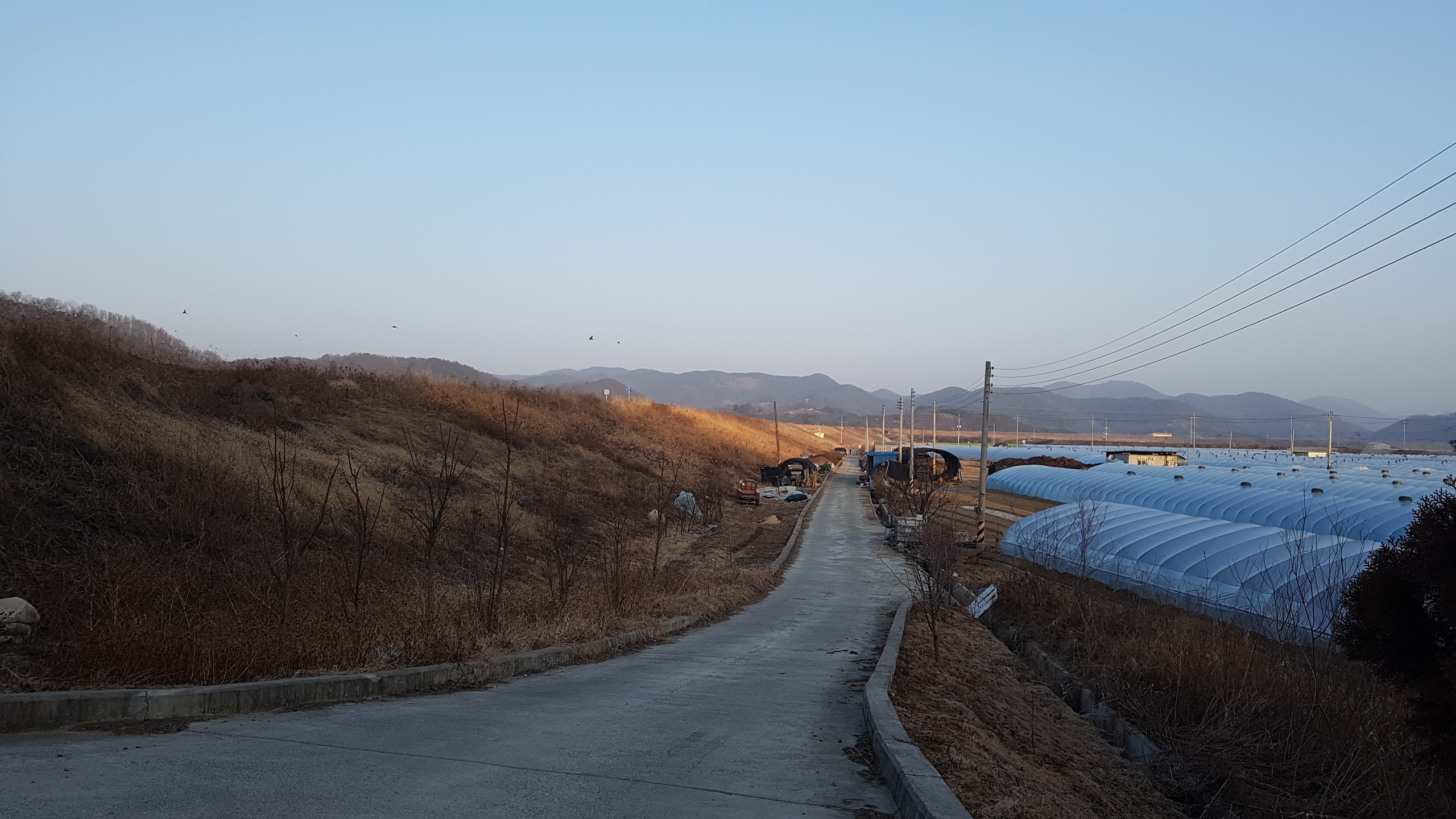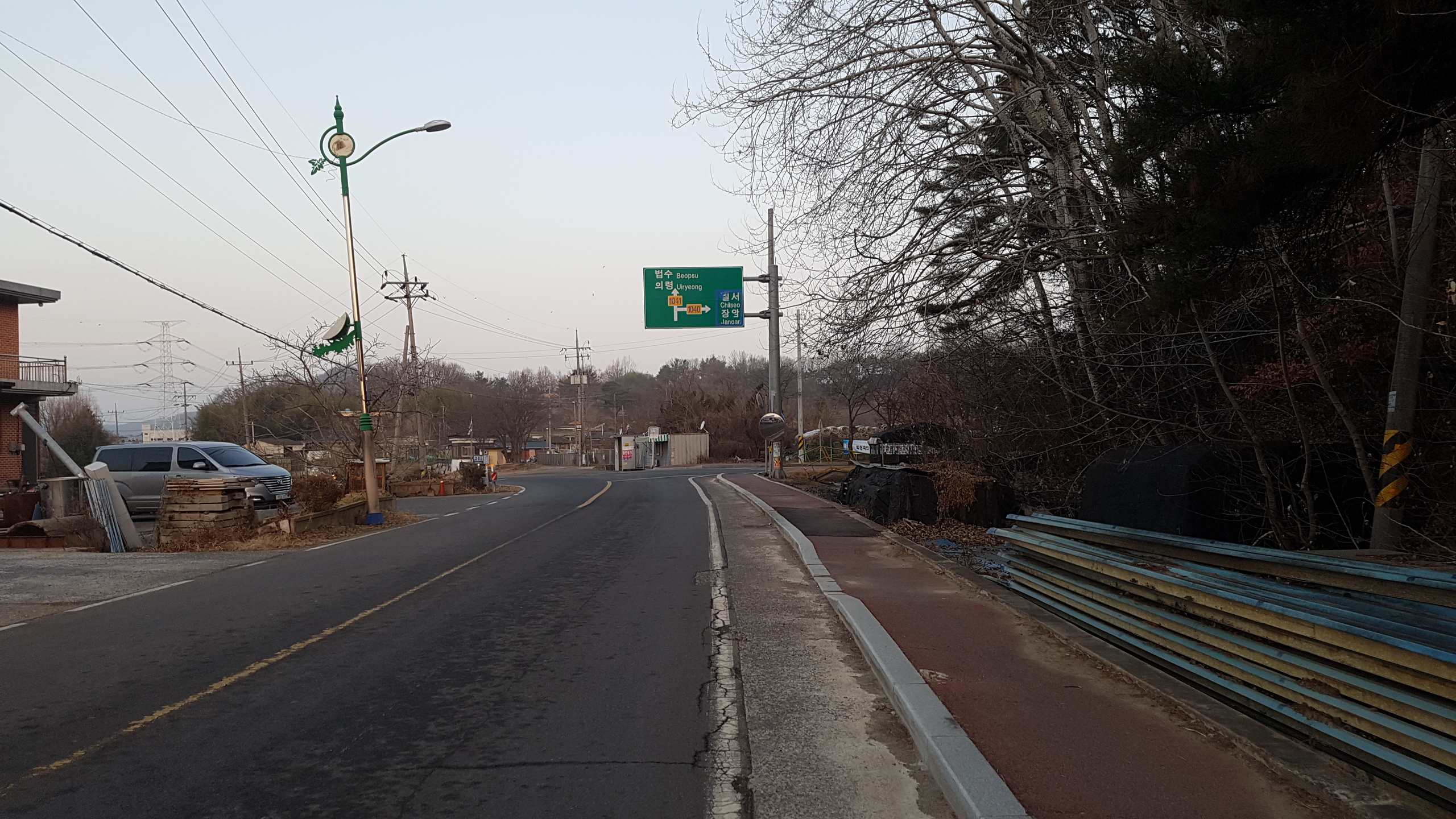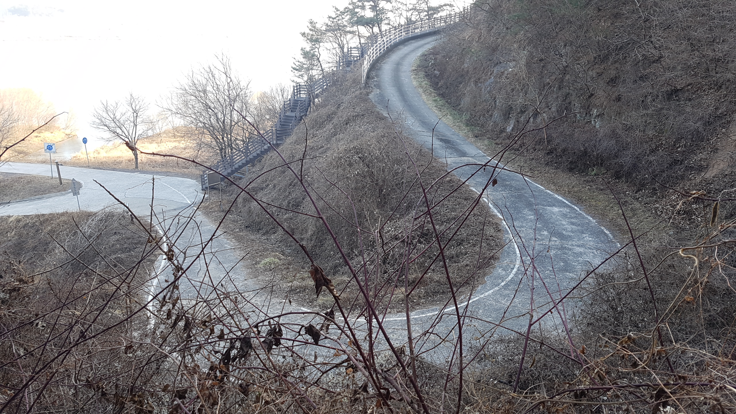 시원하게 포장된 둑방길- 길가에 벚나무를 심어 두었던데 대봉감이나 매실 등 유실수를 심었더라면....