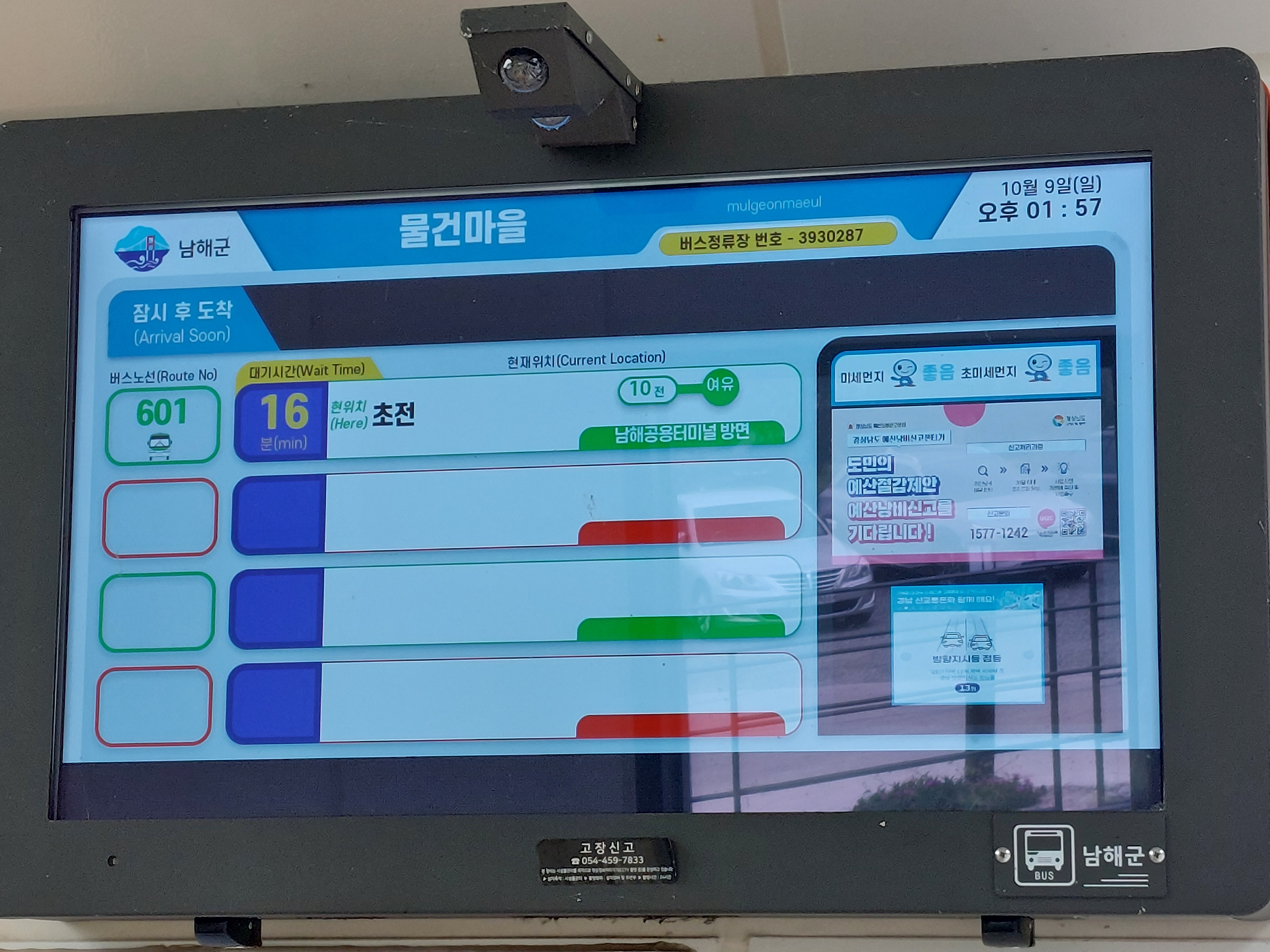 이곳에서 미조에서 1시 50분에 출발하는 버스를 타고 지족으로 감