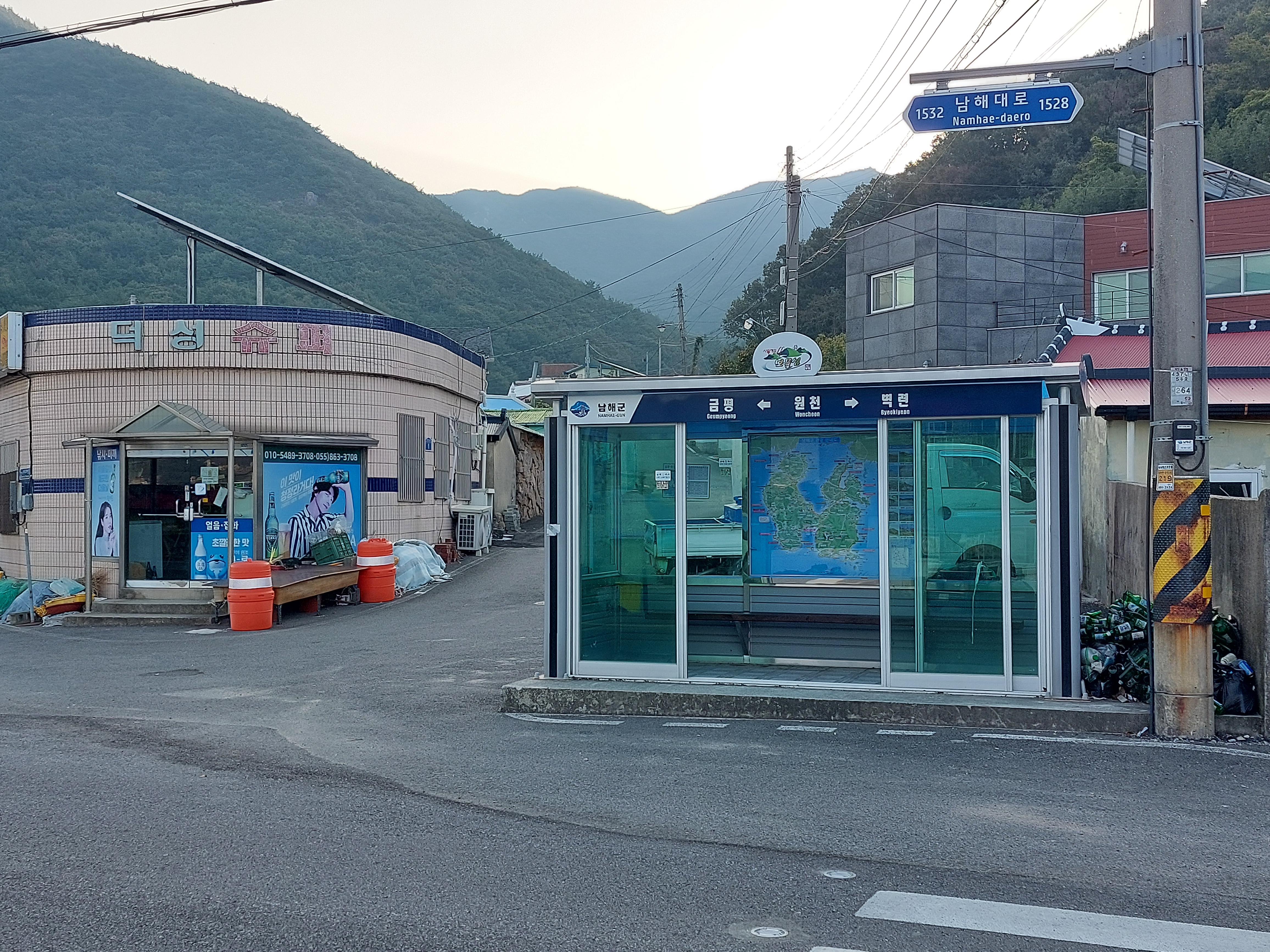 (원천 정류소가 3곳임,덕성슈퍼 있는곳하차 07:15) - 백련마을- 두모마을-소량마을-대량마을-상주해수욕장(11:10)-의령-창원