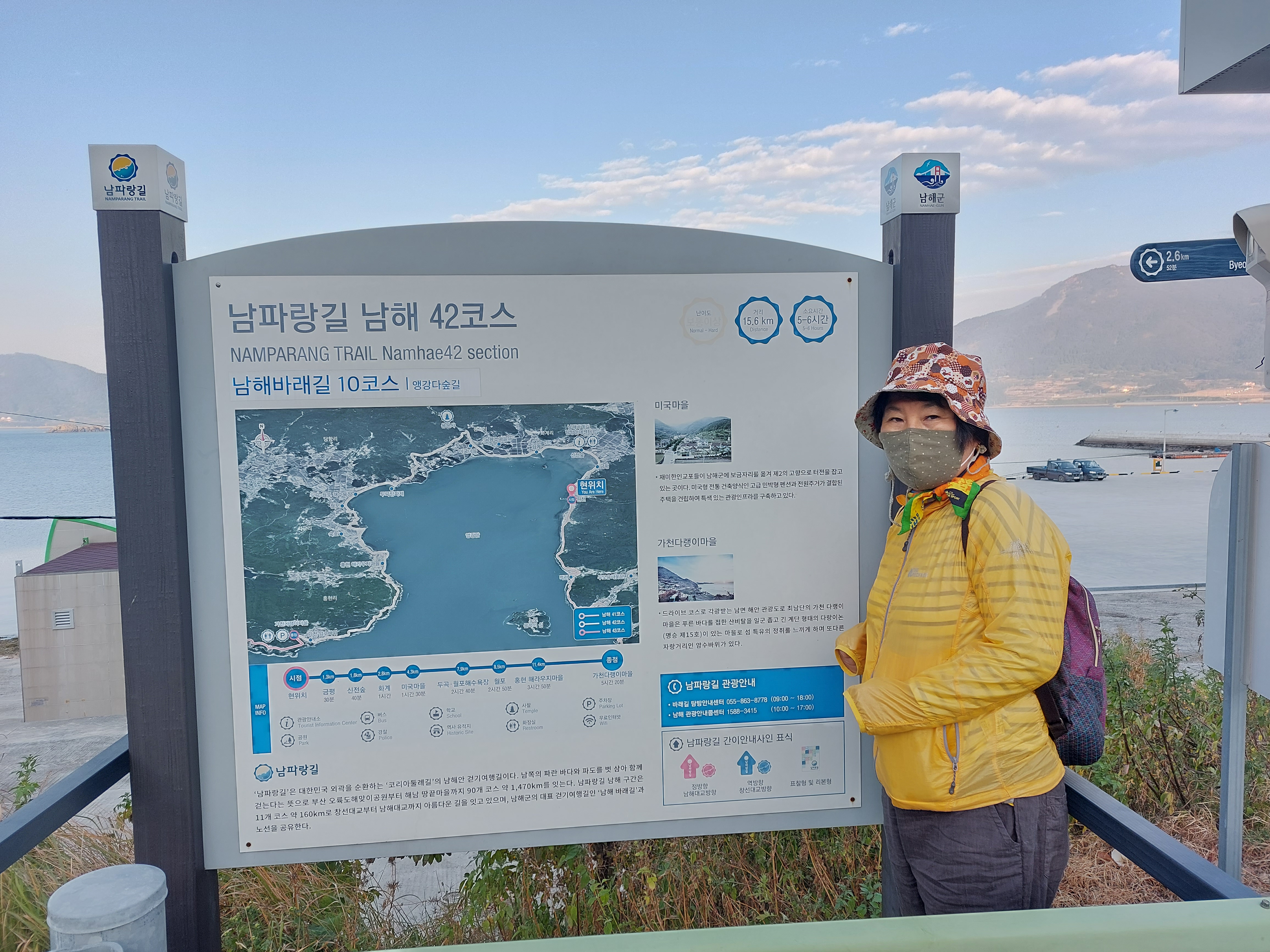 5. 소요시간 : 약 4시간 6.어제 40코스를 걷고 시간이 많이 여유가 있어서 41코스를 3km 더 걸어 천하에서 상주해수욕장까지 왔다.오늘은 정방향으로 걸어가서 원천항에 도착하면 상주로 돌아오는 버스시간이 맞지 않고 많은 시간을 기다려야 하기에 원천항까지 버스를 타고가서 역방향으로 걸어오는 방법을 택하였다. 도착하여 시간을 허비하지 않고 곧바로 의령으로 가서 마늘 심을 논에다 두엄을 옮기고 흩어주고 창원으로 복귀하였다.