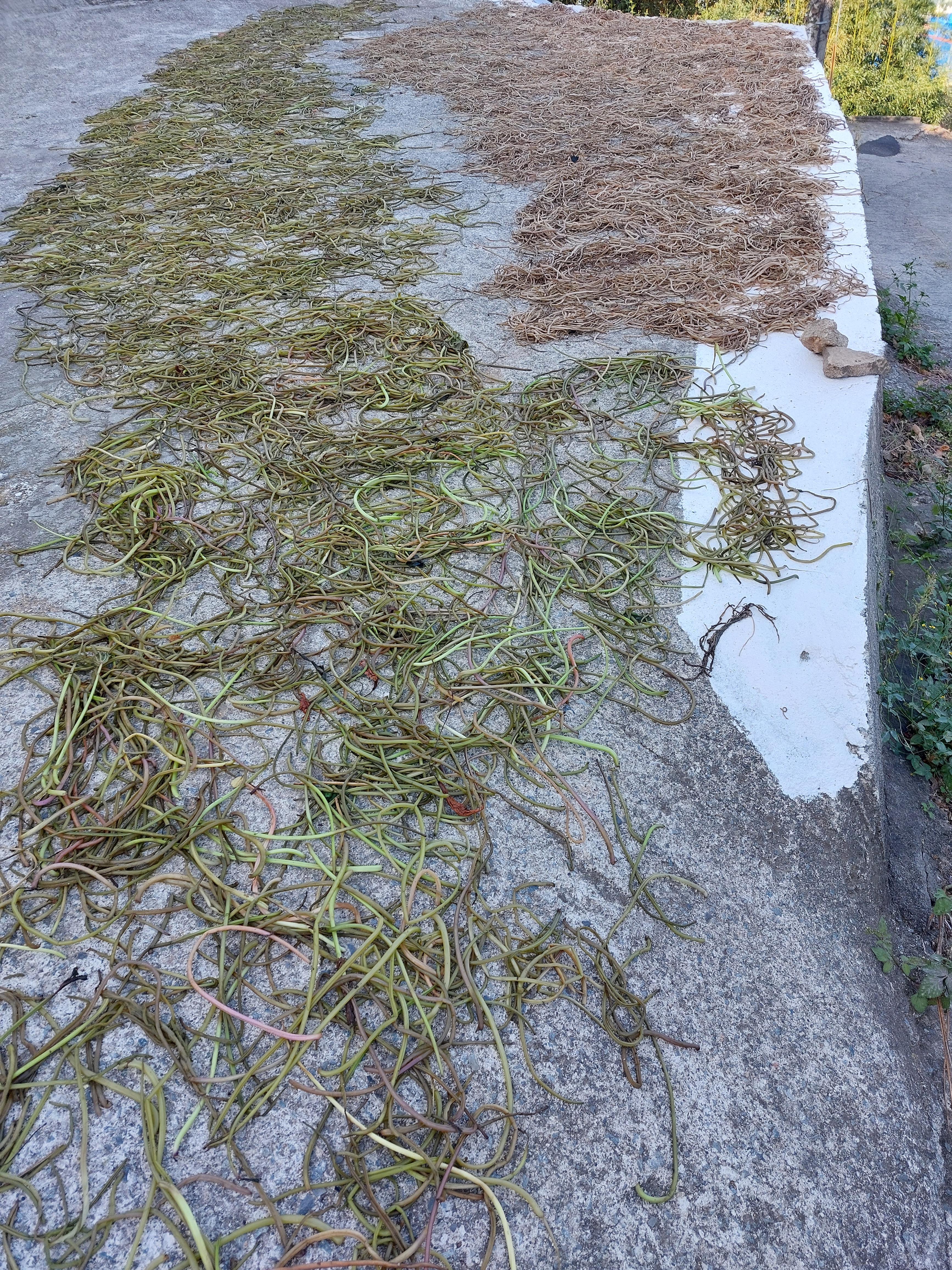 고구마 줄기를 길가에 엄청 많이 말리고 있다.