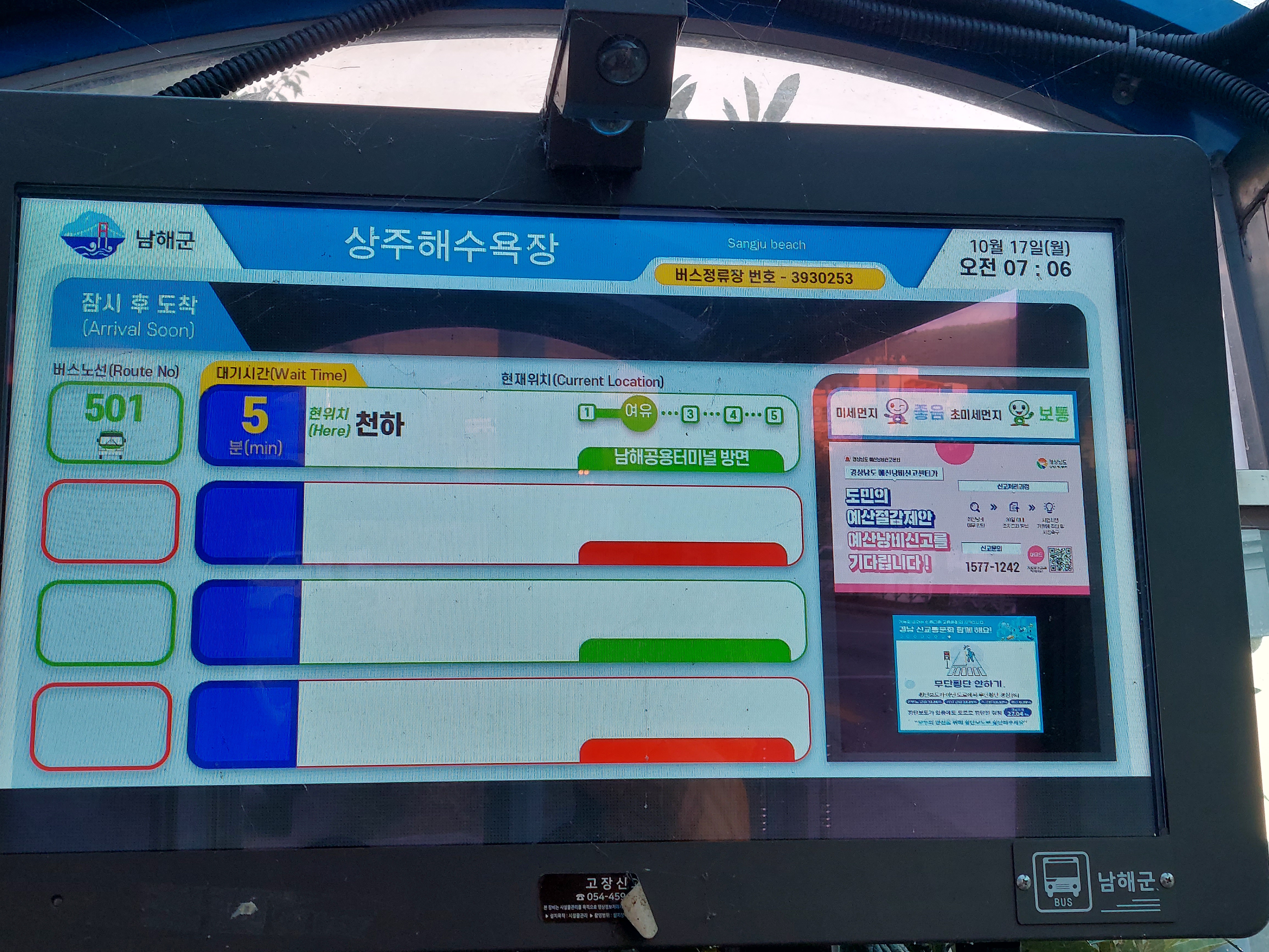 3. 트래킹 코스 : 아침식사(10.17 일, 06:00)-상주은모래비치 버스정류소 501번 승차(07:10)-원천