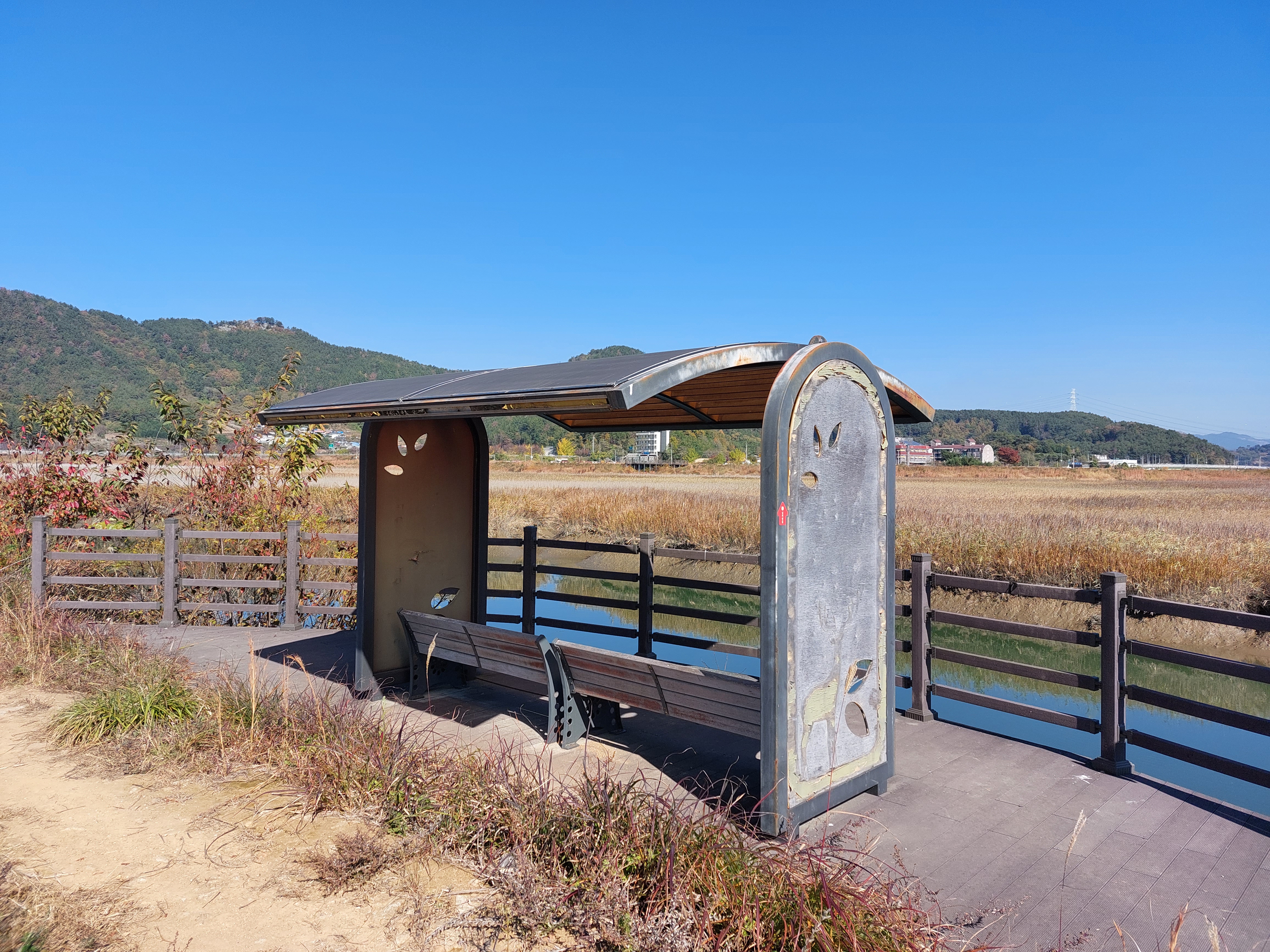 진정천변의 쉼터- 트래킹 3시간만에 만나는 쉼터...