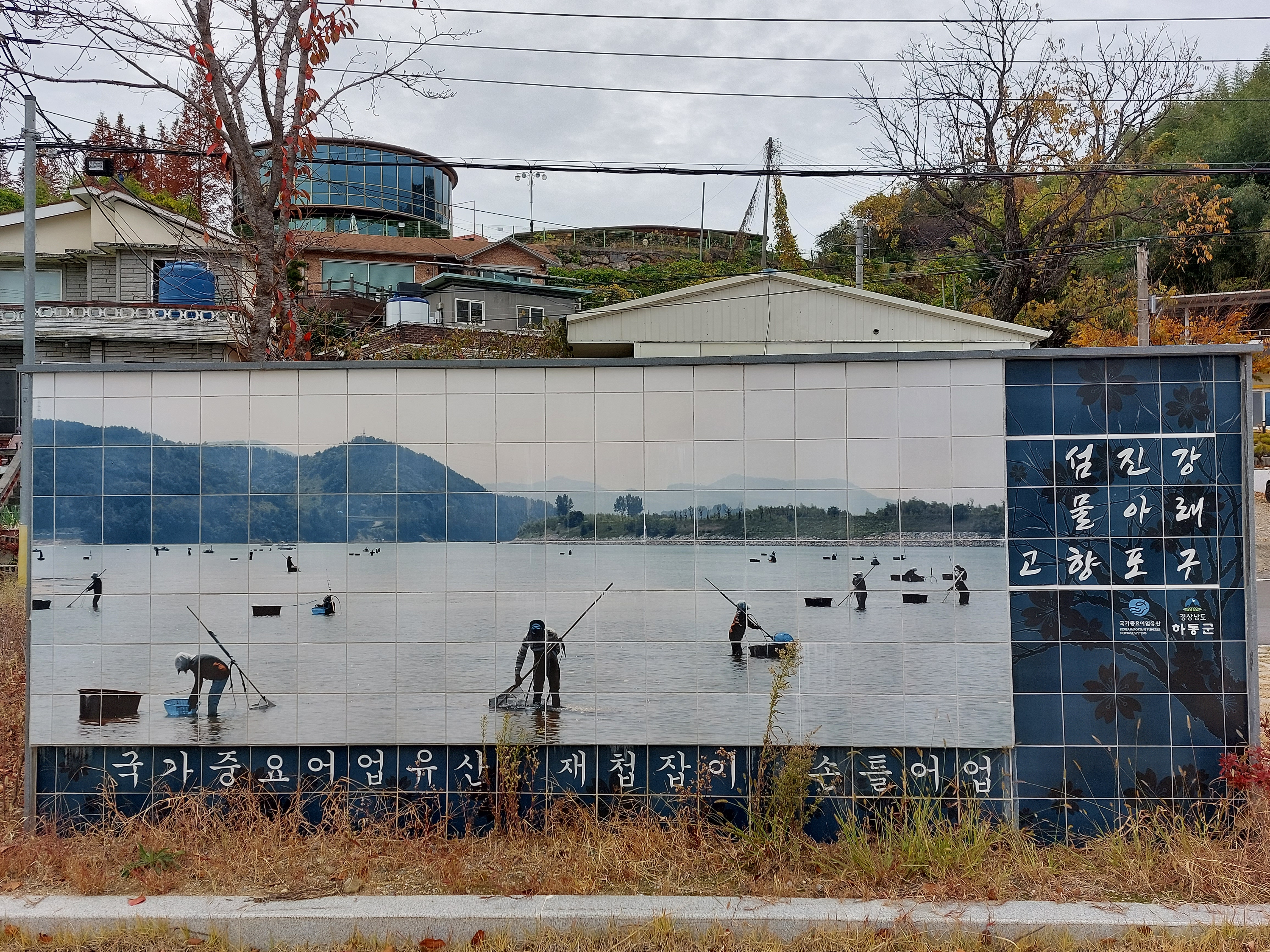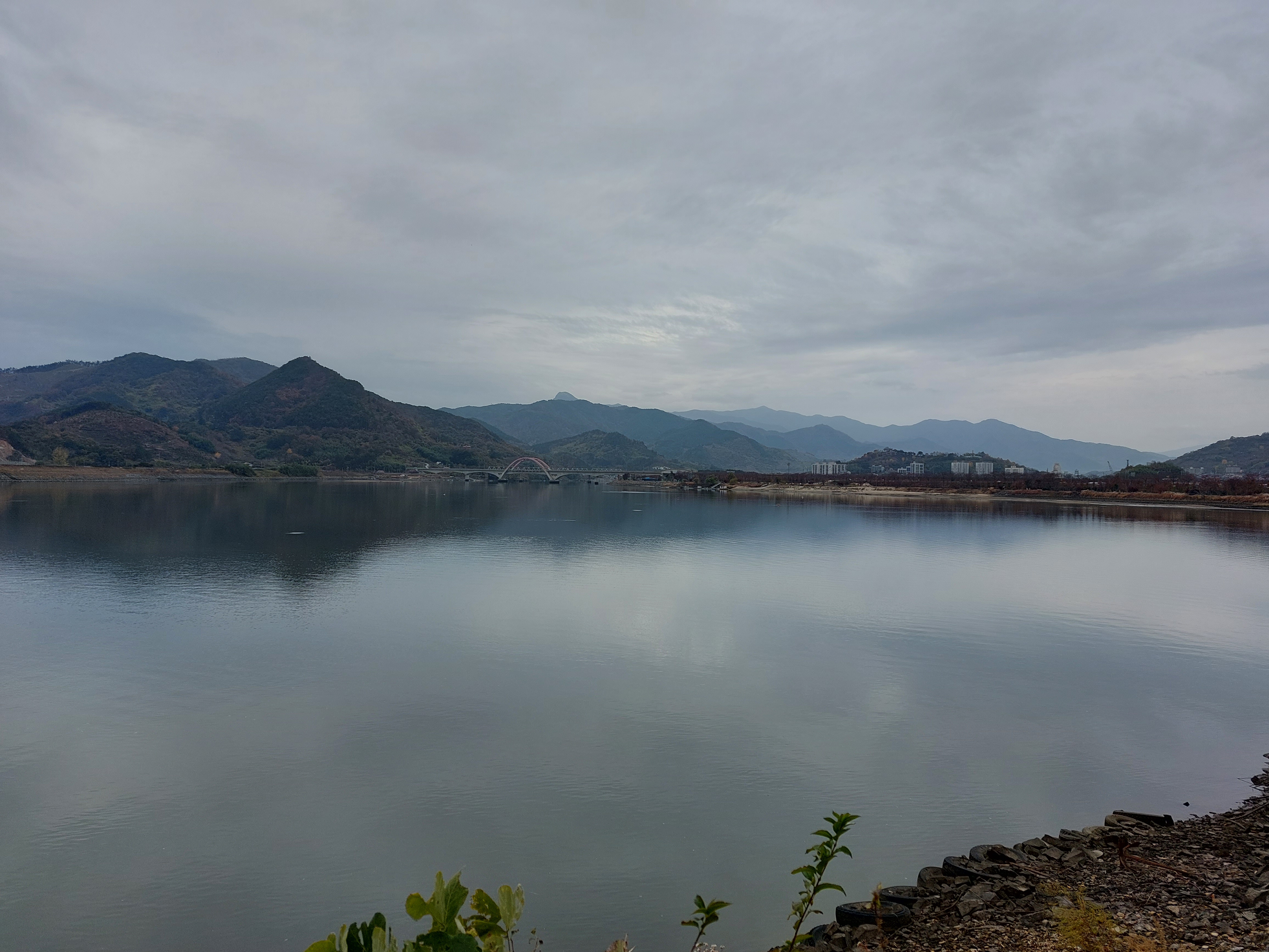 섬진강대교-저 다리 아래에서 300미터 쯤 더 걷다가 목도식당,제첩가공공장 앞 에서 오늘 트래킹을 마치고 서둘러 창원으로 복귀함.