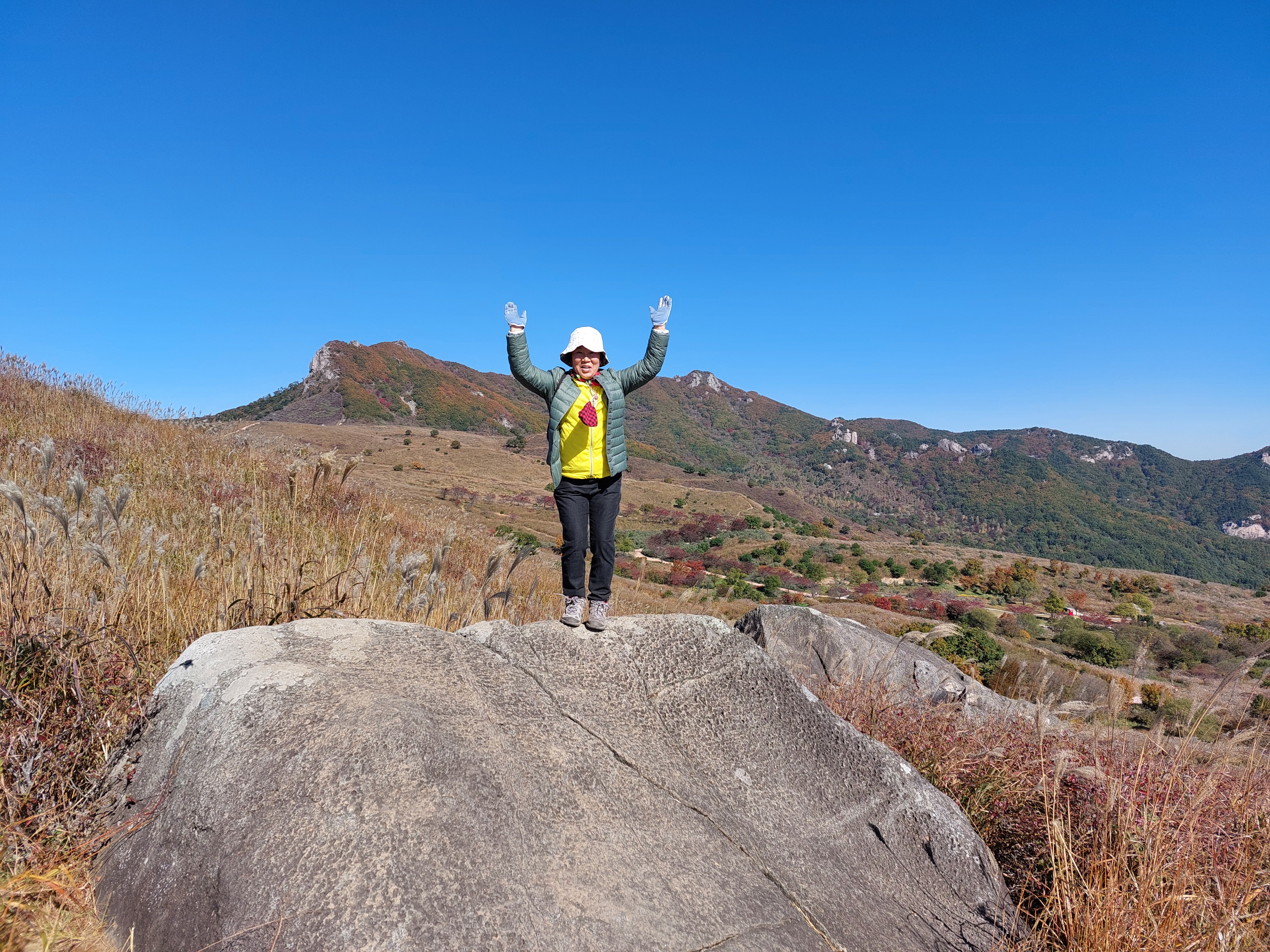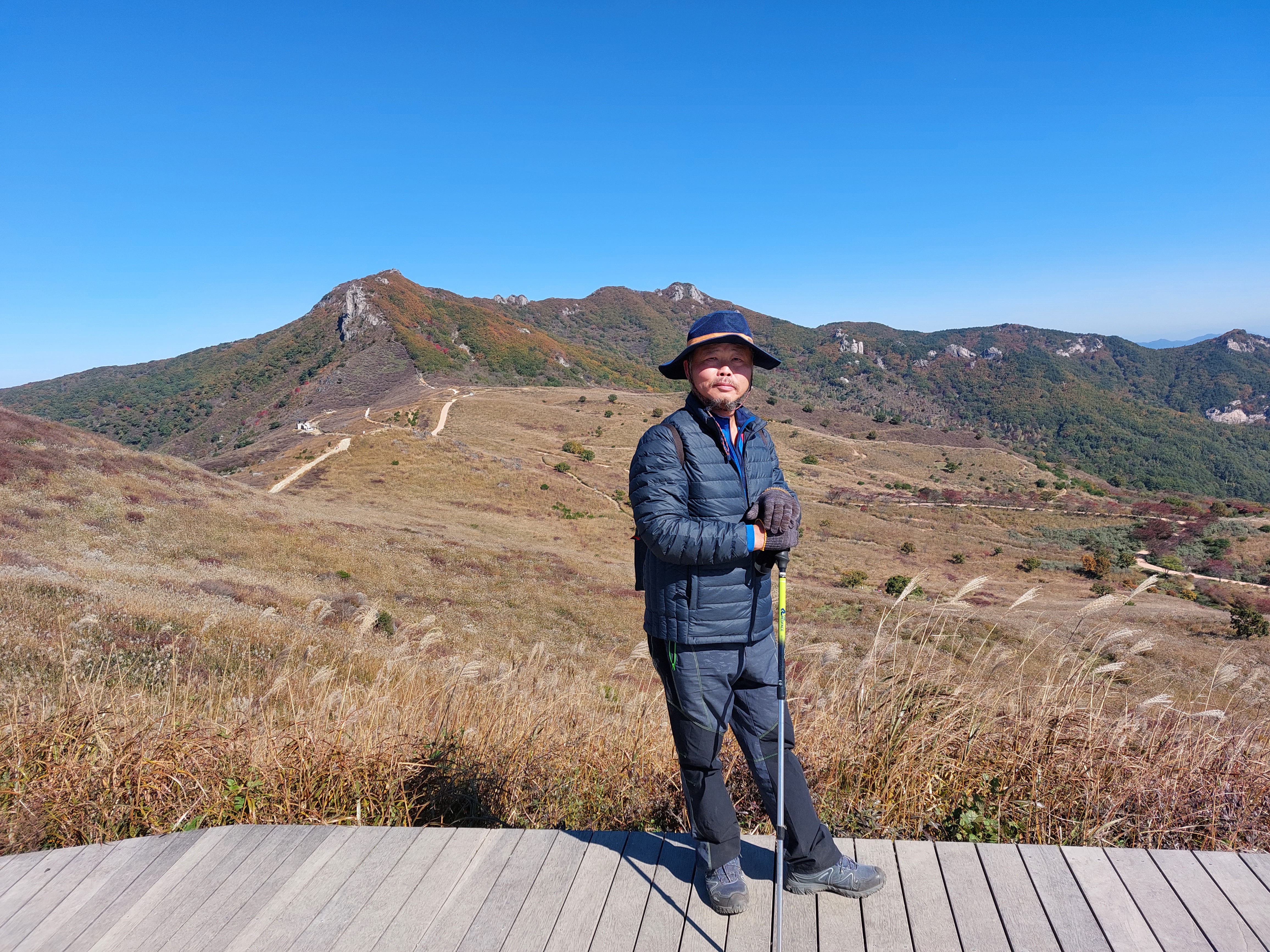 3. 트래킹 코스 : 토월성원(06:10) - 황매산 1오토캠핑장주차장(08:10) - 억새군락지 트래킹-황매산 정상(09:40) -철쭉제단(10:40)-제1주차장- 의령-군북IC휴게소 강변횟집-토월성원