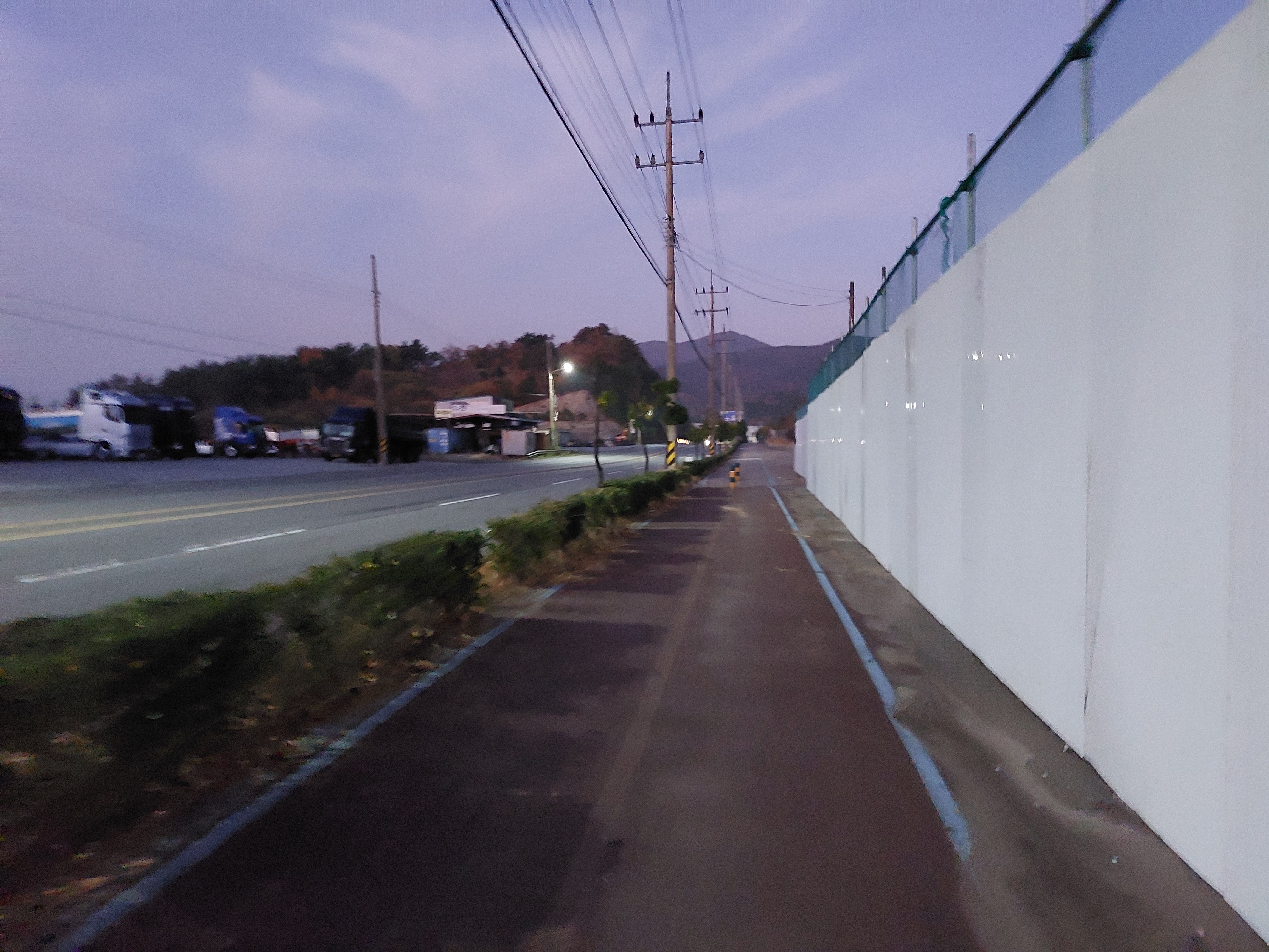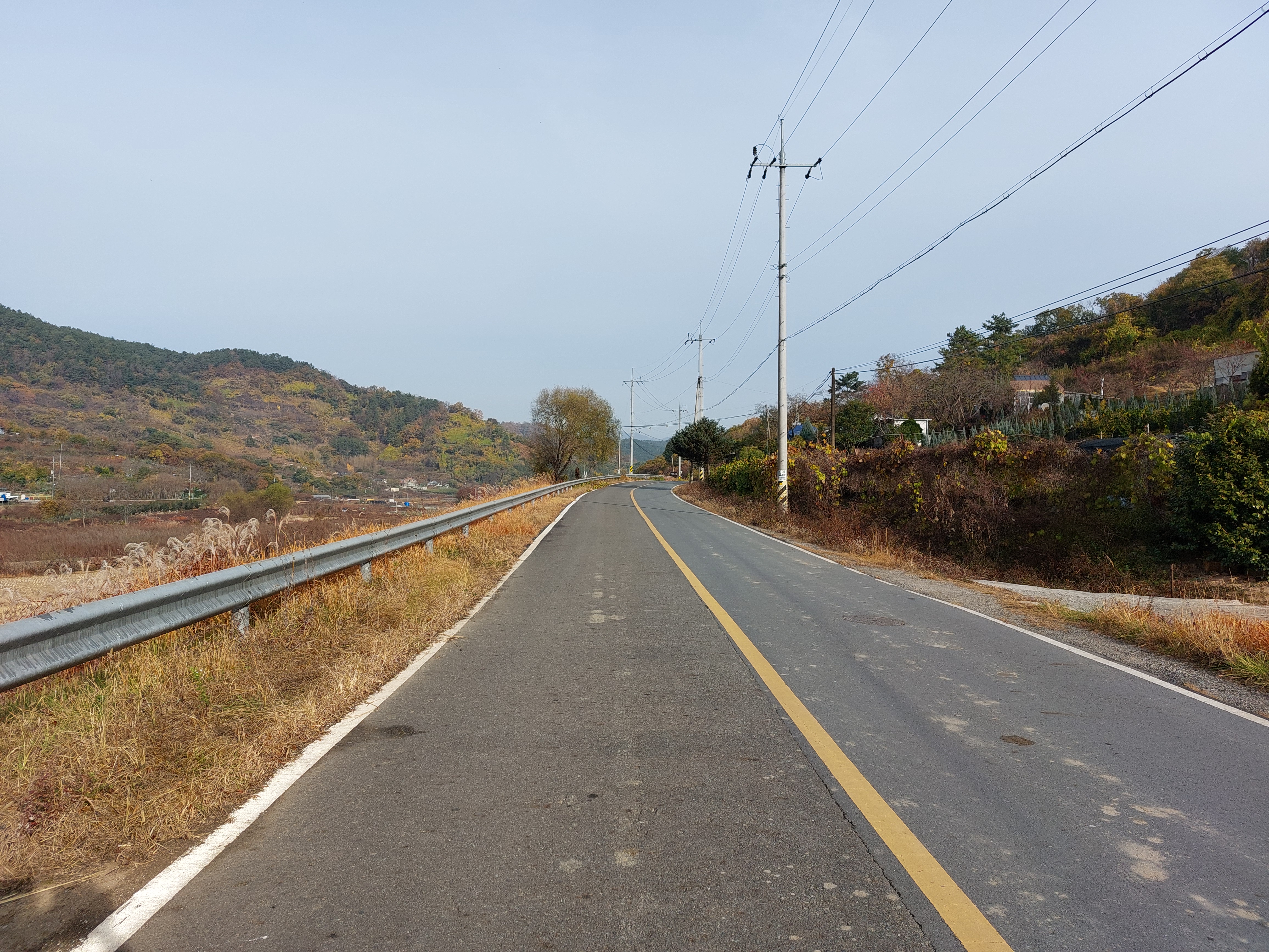 이제부터는 이러한 도로의 가장자리를 광양터미널까지 약 6km를 걸어가야 한다.