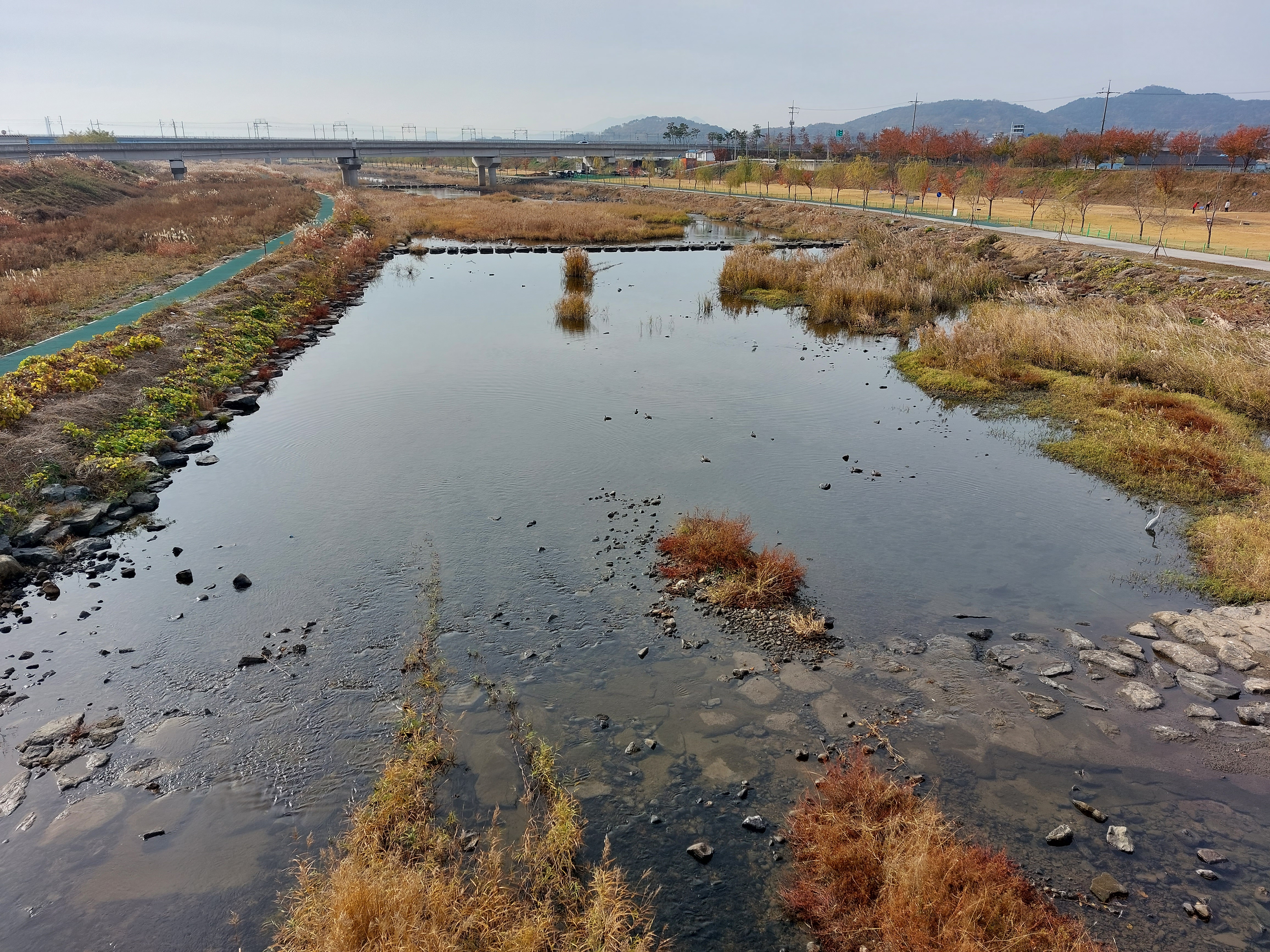 오리떼등 물새들이 한가로이 놀고있는 광양동천...초남교를 지날때의 풍경