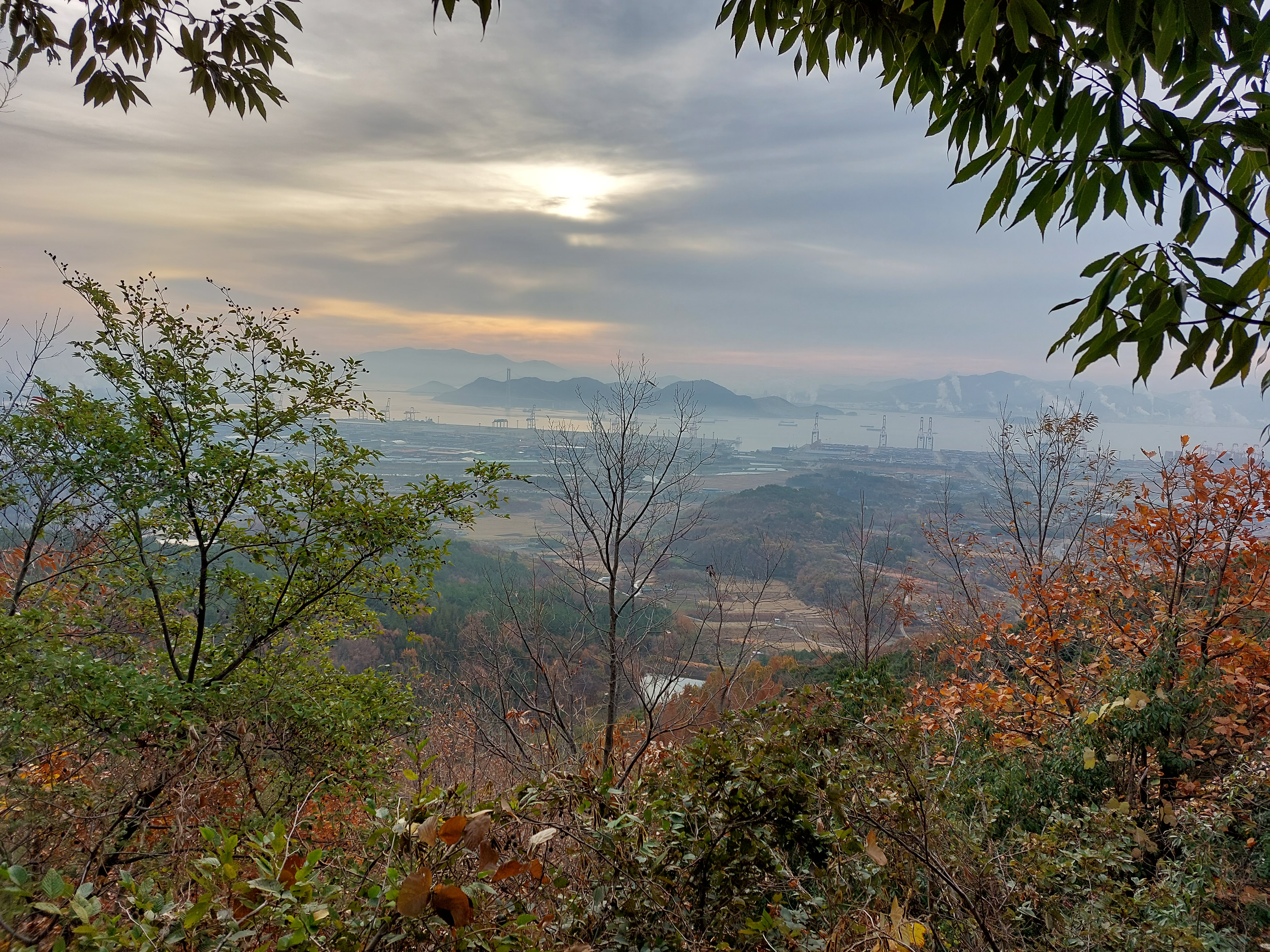 드디어 광양 시가지와 내우산이 보인다. 저기 가운데 하얀 건물 부근이 오늘의 목적지다