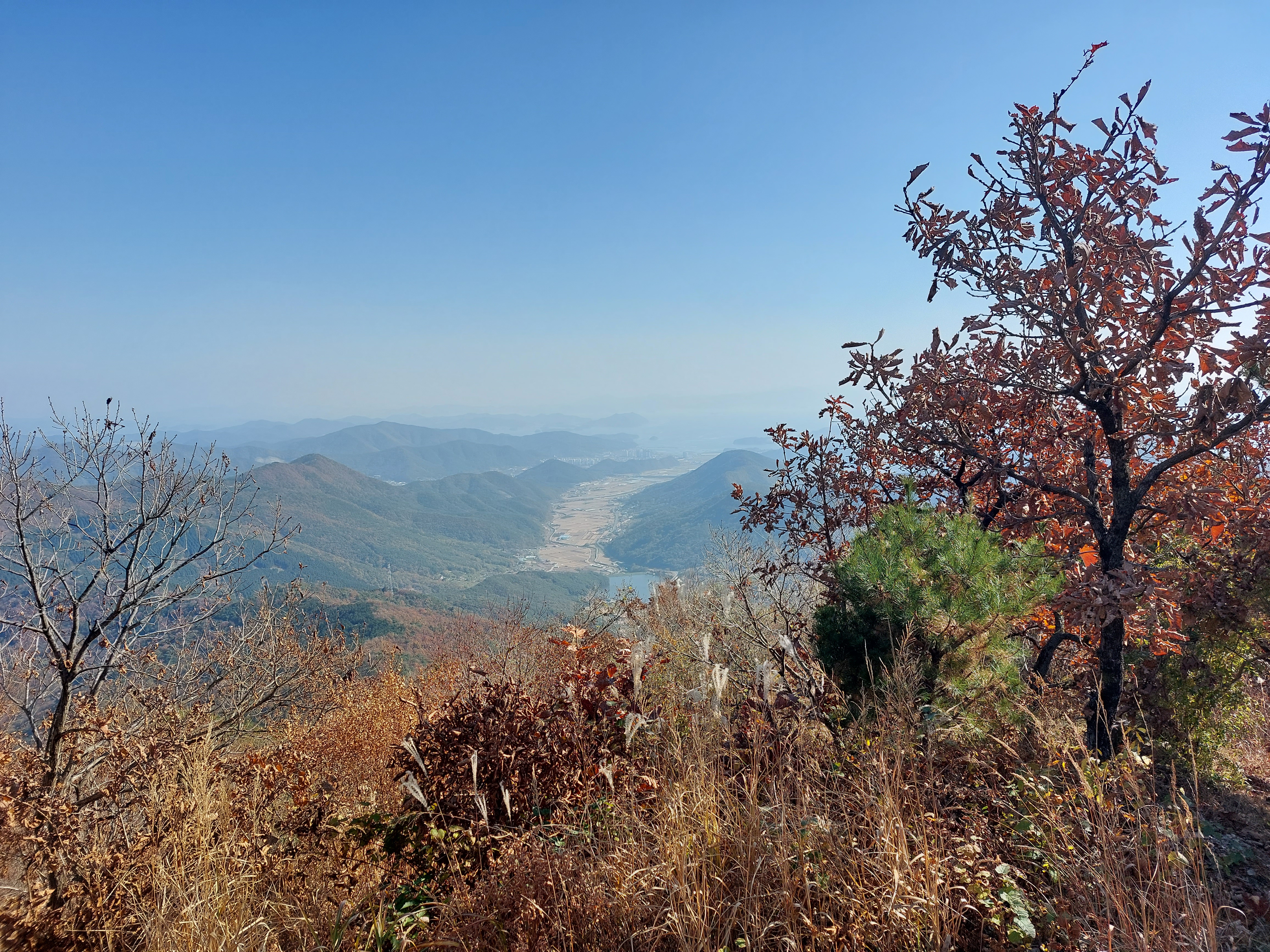 그곳은 다음에 가보기로... 저 멀리로는 진주 금곡면 월아산이 희미하게 우측으로 보인다
